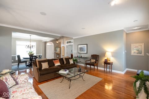 Welcome to this immaculate, all brick residence, nestled within the prestigious Stony Ridge neighborhood. This single-family home exudes sophistication and comfort, perfectly tailored for those seeking a serene, low-maintenance lifestyle. With 2,734 square feet of meticulously maintained living space, the home boasts three bedrooms and two bathrooms. Step inside to discover a large great room that serves as the heart of the home, featuring gleaming hardwood floors that reflect an abundance of natural light. Culinary enthusiasts will appreciate the kitchen's corian countertops and stainless steel appliances, which offer both style and functionality. For moments of relaxation, retreat to the screened porch, a perfect spot to enjoy tranquil views of the surroundings. The property offers practical luxury with a large, oversized two-car garage and a spacious loft above, ideal for an additional bedroom or a creative space. Each element of this home has been immaculately maintained, ensuring a move-in-ready experience. Located in the Villas of Stony Ridge, residents enjoy the convenience of included lawn care and snow removal, allowing more time to savor the nearby amenities. Close to downtown Noblesville, Costco, Stony Creek Marketplace, Hamilton Town Center and I-69