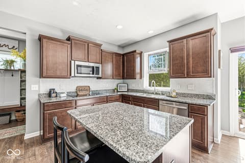 This home is move in ready. Main level offers a open floor plan. The Kitchen has staggered cabinets, island, pantry, solid surface tops, back splash, SS appliances & double ovens. Mudroom w/ lockers, 9ft ceilings, fam rm has a fireplace for those cozy evenings. Primary suite is generous in size, walk in closet & a custom tile walk in shower. The 3 other Bedrooms are spacious in size as well. You will enjoy the finished basement. Surround sound & the TV stay. Bsmt has TV/Movie area & rec area. There is a full bath in the bsmt. Plus hidden storage in the bsmt. 2+ car garage offers lots of storage. And wait till you see the fenced backyard w/ the 26 x 18 stamped patio. The front porch is oversized for you to enjoy.