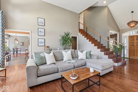Tucked away on a beautifully wooded lot just moments from Geist Reservoir, this exceptional 4-bedroom, 4.5-bath residence is the perfect blend of luxury, privacy, and thoughtful design. From the moment you step inside, you're greeted by stunning custom-designed staircases that serve as both a striking architectural centerpiece and a testament to the home's one-of-a-kind craftsmanship. The main level showcases a spacious and serene primary ensuite, offering a private retreat complete with a spa-like bath and generous walk-in closet. Designed with both everyday living and entertaining in mind, the home features expansive living spaces filled with natural light, seamlessly connecting to an updated kitchen with high-end finishes and modern conveniences. Upstairs, you'll find well-appointed bedrooms with ample space and en-suite or nearby baths, providing comfort and privacy for family and guests alike.The elegantly finished basement elevates this home even further-perfect for entertaining, relaxing, or hosting overnight visitors, with plenty of room for a home theater, fitness space, or recreation area.Step outside to your own private oasis. Surrounded by mature trees, the sparkling in-ground pool and outdoor living spaces create a peaceful, resort-like setting ideal for summer gatherings or quiet evenings under the stars. Located near Geist Reservoir with convenient access to dining, shopping, and top-rated schools, this home offers a rare opportunity to enjoy refined living in one of the area's most sought-after settings.