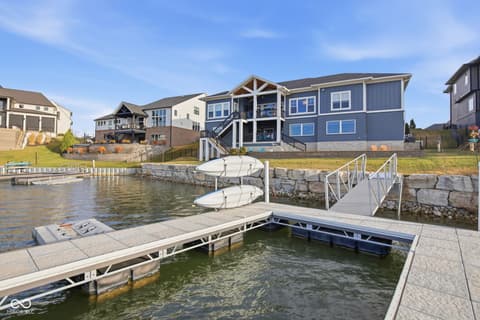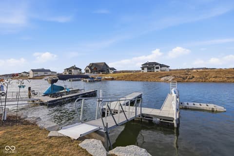 STUNNING 4 bedroom 4 bath TURNKEY ranch WATERFRONT home in Cambridge on Geist. Inviting entry leads to the Great Room with custom finished ceiling beams, stylish fireplace & built-in bench. GR opens to gourmet kitchen that features beautiful quartz countertops, premium stainless steel appliances, large center island, spacious walk-in pantry & dining area. Main level also features primary suite with access to covered upper composite deck w/ fireplace, ensuite spa-inspired bathroom and huge walk-in closet, 2 additional bedrooms, one with ensuite bathroom, and a private office with double doors and built-ins. GORGEOUS oak engineered hardwood flooring t/o most of main level, high end finishes and lake views t/o home! Mud room with cubbies off of 4 CAR tandem garage with durable epoxy flooring & Gladiator cabinets. Large laundry room with cabinets and sink. Lower level has impressive custom bar area, several entertaining areas, large work out room, bedroom w/ ensuite bathroom & spacious walk-in closet. Walk out to your covered patio & incredible outdoor living area where you can float in your low maintenance heated salt water pool, fish or kayak off your private boat dock with water, electricity, kayak rack and jet ski platform or relax on the pool deck taking in SPECTACULAR sunsets. Fenced in back yard & one of the widest water frontages in the neighborhood w/ quarried stone seawall. Award winning HSE schools, close to dining, golf, parks and more. This amazing STAYCATION home offers a blend of modern comfort & a relaxed lake lifestyle!