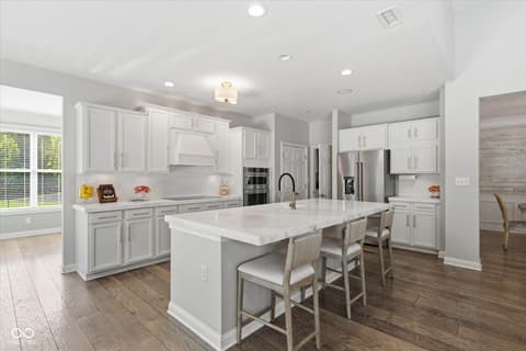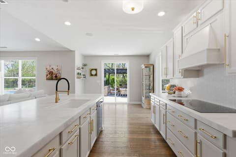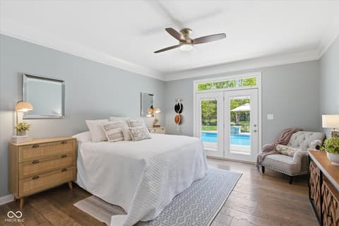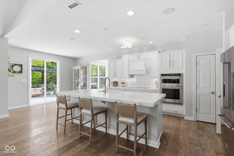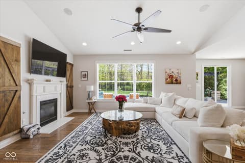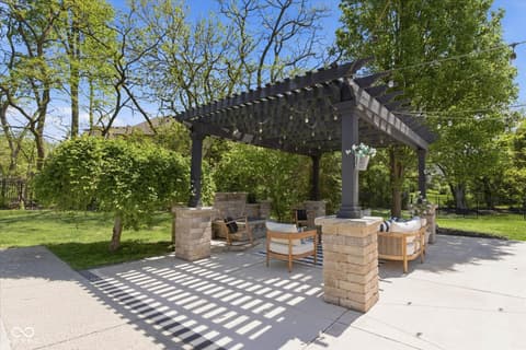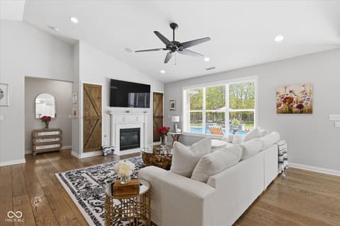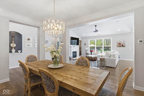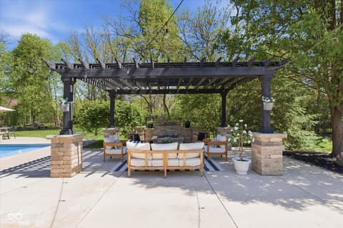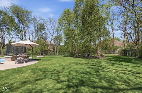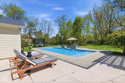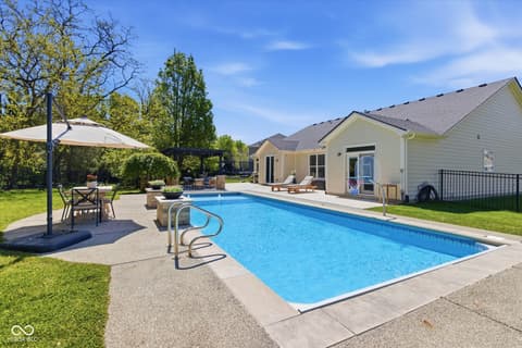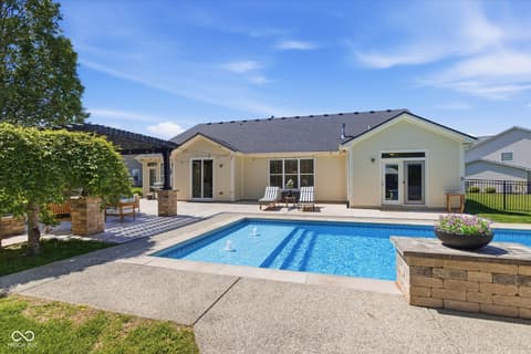 Set on a .62-acre lot in Fishers with a heated inground saltwater pool, this exceptional, well-maintained home offers over $75,000 in recent upgrades and an elevated living experience. Inside, thoughtful design and high-end finishes shine throughout. The fully remodeled kitchen (2024) features stunning marble countertops, newer appliances, abundant cabinetry, and island seating, flowing seamlessly into the formal dining room and inviting great room with a striking marble and mother-of-pearl fireplace. New flooring and updated lighting (2024) enhance the home's modern feel. The main level includes three bedrooms, including a primary suite with direct access to the backyard. The ensuite offers dual sinks, a soaking tub, separate shower, and a spacious walk-in closet with built-in shelving. A sitting room or office off the entry and an additional flexible room provide options for work, guests, or hobbies. Upstairs, a private fourth bedroom with a full bath creates the perfect guest suite or hangout space. The backyard is a true showstopper, featuring a heated saltwater pool with a new liner (2024) and heater (2025), a gazebo seating area, and abundant green space. An irrigation system with multiple zones (13-15 heads) keeps the grounds lush. A three-car garage completes this beautifully upgraded home, blending luxury, comfort, and functionality.