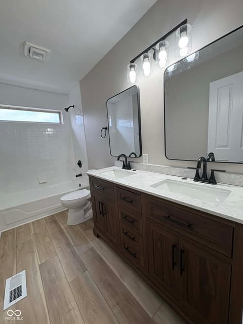 Welcome to 10744 Putnam Place in Carmel - a spacious and beautifully updated 4-bedroom (5th room in basement w/closet but no window), 3.5-bath home offering room to live, entertain, and grow in one of the area's most desirable communities. Inside, you'll find thoughtful updates throughout, including new engineered hardwood flooring that adds warmth and durability to the main living spaces, along with updated lighting, hardware, and modern finishes that give the home a fresh, move-in-ready feel. The kitchen features stainless steel appliances and flows seamlessly into the living and dining areas, creating an ideal layout for both everyday living and hosting. The primary suite offers a relaxing retreat with a renovated bath that includes a tiled shower, garden tub, updated vanities, and stylish fixtures. Four additional bedrooms provide flexibility for family, guests, or work-from-home space. The fully finished basement expands the home's versatility with ample room for a media area, recreation space, fitness room, or play area-plus additional storage. Step outside to enjoy a newly installed custom concrete patio overlooking a very large backyard, perfect for entertaining, outdoor dining, or simply enjoying the open space. The refreshed exterior adds curb appeal and highlights the care taken throughout the property. Located in highly sought-after Carmel, close to top-rated schools, parks, shopping, and dining, this home combines space, updates, and location in one exceptional package.