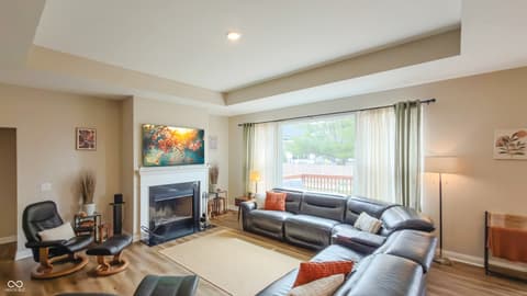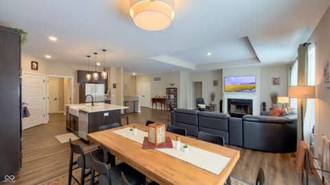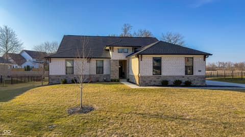 Motivated Sellers will consider up to $7,500 towards a rate buy down, closing cost assistance or fence installation with a strong offer! Custom-built in 2023 by Davis Homes, this full-brick ranch offers 3,719 sq ft of move-in ready living in Blossom Trace - one of Fortville's premier all-custom neighborhoods. Builder's warranty still in place. No wait, no compromises. The main-level layout puts everything on one floor. A raised-ceiling foyer opens to a dramatic great room with wood-burning fireplace and oversized windows. The chef's kitchen features quartz countertops, designer backsplash, white apron sink, soft-close cabinetry, built-in oven, convection microwave, electric cooktop, smart refrigerator, and walk-in pantry. A new half bath and mudroom lead to the 3-car side-load garage - extended 2 ft with EV charging outlet. The 288 sq ft primary suite is separate with a tiled shower, double vanity, water closet, linen storage, and a walk-in closet connected directly to the main-level laundry. A private office with French doors, two additional bedrooms, and a full bath with double sinks complete the main floor. The partially finished basement adds 682 sq ft: a legal bedroom or family room with egress window, full bathroom, and sitting area - sauna included plus unfinished space ready for a gym, theater, or workshop. Plumbing is accessible for a future kitchenette - ideal for multigenerational living. Outside, a 20x10 deck overlooks a quiet, tree-lined 0.35-acre lot. Additional features: SEER 16+ HVAC, smart thermostat, tray ceilings, and 36-inch hallways. Minutes to downtown Fortville, SR 67, and I-69 - quick access to Indianapolis, Fishers, and Noblesville. New-construction quality, builder's warranty, immediate occupancy. Schedule your private tour today.