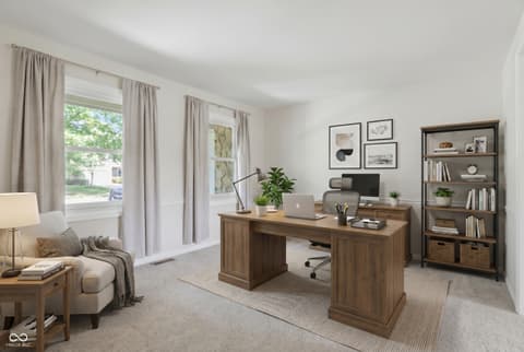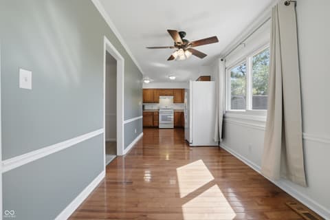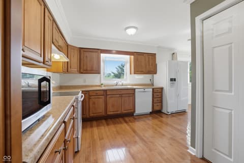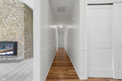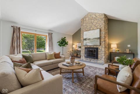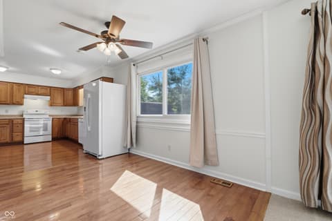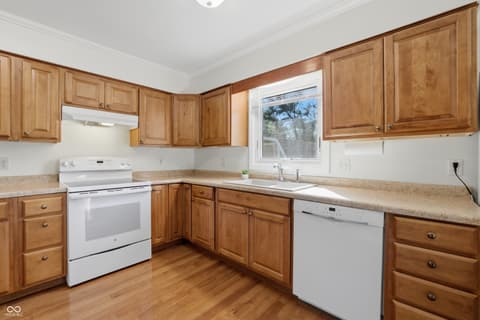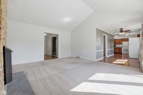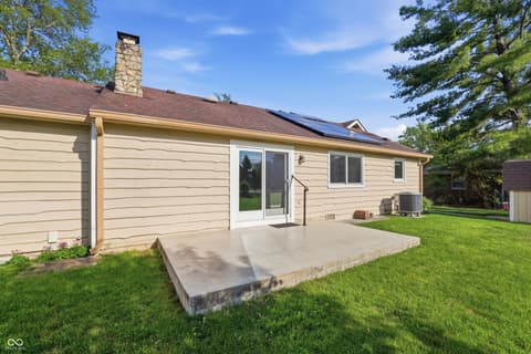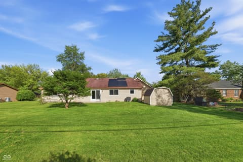 Nestled in the heart of Fishers, this well-maintained ranch offers the perfect blend of comfort, flexibility, and location-just minutes from the vibrant Fishers District, Conner Prairie, and the new Kroger, with easy access to shopping, dining, and everyday conveniences. NO HOA-a rare find in this area-gives you the freedom to truly make the space your own. Inside, you'll find fresh interior paint, beautiful wood cabinetry, and all appliances included, making this home truly move-in ready. The thoughtfully designed layout offers a seamless flow between living spaces, with a front living room that can easily serve as a home office or cozy sitting area. The family room features a stunning floor-to-ceiling stone, wood-burning fireplace. The primary suite showcases a vaulted ceiling and an updated tile shower. Major mechanicals have been recently updated with a newer heat pump and A/C (2022), offering added peace of mind. Step outside to enjoy the large .34-acre yard, partially fenced with a storage shed-perfect for outdoor living. Added bonus: solar panels help keep energy costs low. Schedule your tour today!