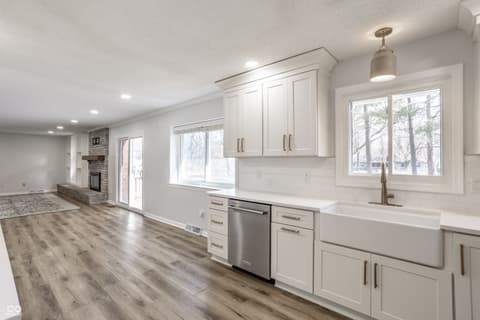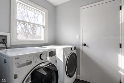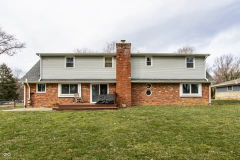 UPDATED 4 bedroom home in Carmel!! Main floor owner's suite with connecting full bath plus three spacious bedrooms upstairs. Newer vinyl plank flooring throughout (except owner's suite)! Recently updated/remodeled kitchen with new cabinets, solid surface counters and stainless steel appliances! Convenient drawer microwave oven! Recessed LED lighting! Beautiful spacious fenced backyard with wood deck, patio area and mature trees! Newer vinyl windows and sliding glass door! Other updates include roof 2021, windows replaced 2022, A/C 2024, furnace 2017 with recent new blower motor, water heater 2022, interior doors and hardware, updated/remodeled owner's bathroom. Refrigerator, gas range/oven, washer and dryer included! Two closets in every bedroom! Very convenient upstairs attic access for storage! Fireplace decorative only.
