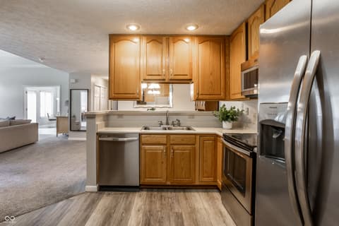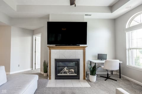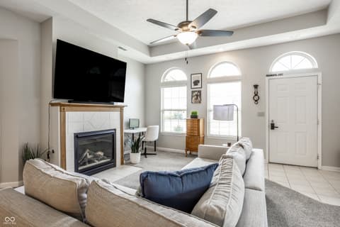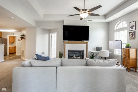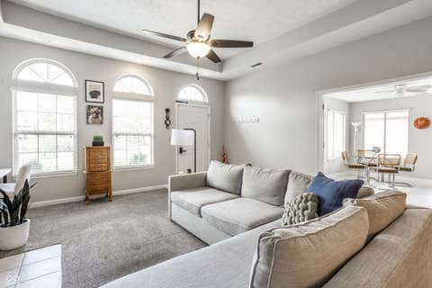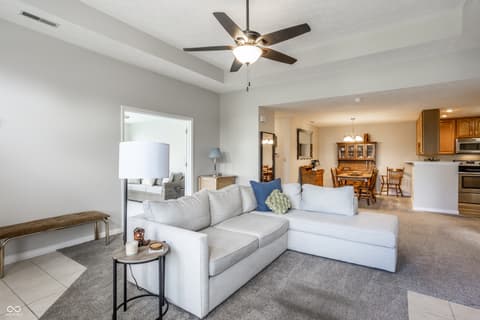 Tucked away in a quiet corner of desired Courtyard Lakes in Fishers is 11251 Abington Place, a 2 bedroom, two bath condo with a lovely sunroom, newer carpet and flooring, a lovely front patio, and a HUGE 2-car garage, with all the storage you'll need! The main living space has great flow to all rooms, a gas fireplace for those cold nights, and easy access throughout. Courtyard Lakes is a lovely community, with pool, clubhouse, quiet streets and easy access to all that Fishers has to offer! Make this the start of your next chapter!