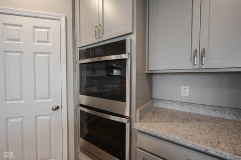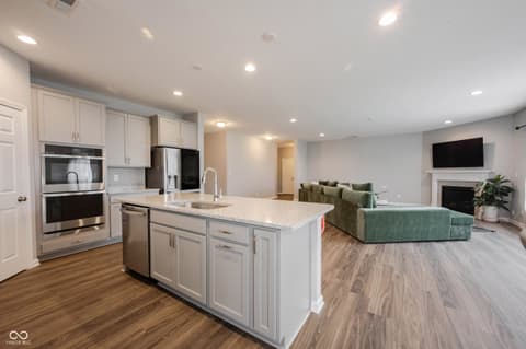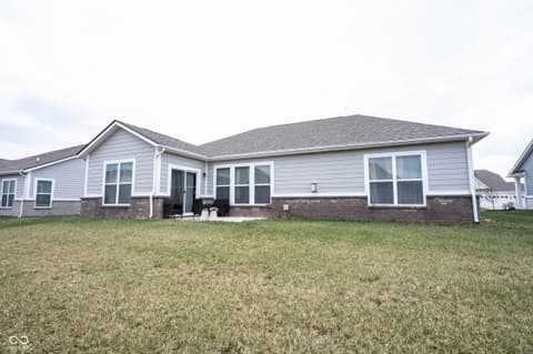 For your toMORROW... Spacious, open-concept ranch is just 4 years old. Carefree brick and composite siding and luxury vinyl plank flooring in main living areas. Live comfortably all on one level, with 3 bedrooms, 2 full baths, great room with gas fireplace. Living room full of space and light, with a wall of windows. Open kitchen with trendy gray soft-close cabinets; quartz countertops; oversized island with farm-style sink; GE stainless steel appliances. Cooktop is vented to the outside. Double ovens for easy entertaining. Full-sized walk-in pantry. Kitchen open to breakfast room and sunroom, leading to patio. One wing has 2 bedrooms, full bath, and office/den. Second wing includes large, welcoming primary suite with tray ceiling & wall of windows. Super-sized walk-in closet. Primary bath has his and hers vanities with extra storage; tiled, walk-in shower for 2 and linen closet. There are rough-ins for ceiling fans in each bedroom. Laundry room with shelving & double closet; washer & dryer are included. Water softener is also included with the home. 3-car garage with attic access; automatic sprinkler system.