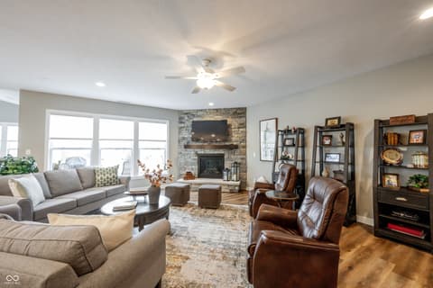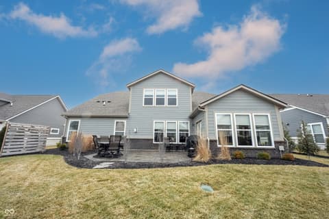 Start living with less home maintenance this Spring in Merion! Impeccably maintained w/so many custom details throughout, making this home one of a kind! 3 bdrm, 2 bath Ranch w/bonus room upstairs! Step inside to a foyer, greeted by 10 ft clngs & luxury vinyl plank flrs, flowing seamlessly throughout the main living space! Great room w/a focal point of a stacked stone fireplace giving this room elegance and ambiance! Wall of windows offering natural light & overlooking the stunning addition of the outdoor living space. Open to the gourmet kitchen that is a SHOWSTOPPER! Rich stained cabinets, gleaming quartz counters, complemented by a beautiful backsplash and stainless-steel appliances all included! Chefs dream w/dbl ovens & gas range! The addition of a butler's pantry/beverage center between the kitchen & great room is a great custom detail! HUGE island w/seating, perfect for everyday living & entertaining! Pantry w/custom wood shelving. Spacious dining area & sunroom that makes for the perfect extension of living space in the home! Mudroom off the 3 car garage, complete w/space for boot bench! Laundry room that is spacious & complete w/cabinets, utility sink/folding shelf. The floorplan flows seamlessly w/the Owners' suite tucked off of the rear of the home for privacy. Complete w/ensuite bath featuring a luxury shower, tiled floor to ceiling. Dual sink vanity w/quartz counters & tons of storage! Spacious WIC w/custom adjustable shelving. Down another private hall, is bedroom number 2 & a full bath. Bdrm 3 located off foyer. Upstairs is a generous sized bonus room for a second living space, or 4th bedroom if desired! Step outside into your own outdoor oasis! 305 sq ft paver patio surrounded by lush landscape, on all 4 sides of the home! Don't worry about lawn maintenance w/irrigation this summer, and the homeowners association maintaining your lawn! Close to Sagamore, a short golfcart ride away for recreation and golf, nhood clubhouse for gatherings!