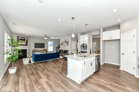 Charming 3BR/2BA Home in Merion Subdivision! This beautifully maintained home features stylish LVP flooring throughout the main living areas & spacious, open-concept layout. Gourmet kitchen boasts quartz c-tops, tile backsplash, gas cooktop, double ovens, center island w/ breakfast bar, walk-in pantry, & sunlit breakfast/sun rm. Family rm offers cozy gas-log FP, perfect for relaxing evenings. Main-lvl primary suite includes double vanities, full shower stall, & large WIC. Upstairs, you'll find a versatile bonus room-ideal for an office, playroom, or guest space. Enjoy outdoor living on the extended patio in the private backyard. Additional features include whole-house water filtration system, water softener, Nest thermostat, & Nest doorbell. For an additional monthly fee, HOA offers low-maintenance option for maintaining yard/landscaping. Move-in ready-just unpack and feel at home!