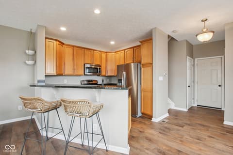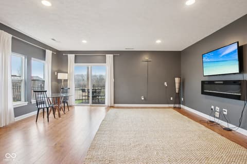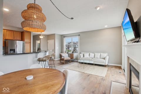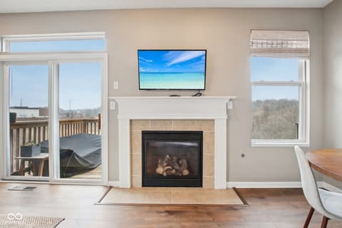Rarely available in such a prime location, here is your opportunity for low-maintenance living with incredible walkability in the heart of Fishers. This multi-level, end unit condo offers easy access to some of the area's newest restaurants, local shops, entertainment, and convenient interstate access. Inside, the home features a bright and welcoming living room with a cozy gas fireplace, stainless steel appliances, and granite countertops in the kitchen. Step out onto the deck and take in the peaceful pond and nature preserve views, an ideal spot to unwind and catch beautiful sunsets. Upstairs you'll find two bedrooms, a versatile loft space, and conveniently located laundry. The walk-out lower level offers additional living space and is already set up for a wet bar, perfect for entertaining or creating your own retreat. Recent updates include new main-level flooring along with a new HVAC system, water heater, and roof in 2023, providing peace of mind for years to come.