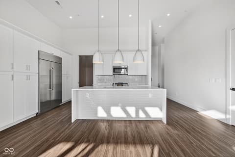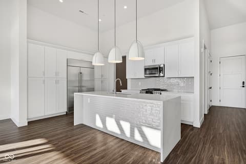 Now accepting Reservations! Experience elevated living with Unit 506 at The Overture at Proscenium-a luxury condo in the heart of Carmel. This exceptional unit, one of only seven available, offers modern sophistication and privacy. Boasting 13-foot ceilings, Unit 506 features a bright, open floor plan with high-end finishes and hardwood floors. The gourmet kitchen includes top-tier appliances and sleek countertops. Enjoy stunning panoramic views from your private, three-sided balcony-perfect for relaxing or entertaining. A flex space of the back of the kitchen adds a useful space perfect for an office. Each unit also comes with external storage rooms, ensuring ample space for all your belongings. The complex features a gym and bicycle storage facility as an extension to your home. Located just minutes from Carmel's finest dining, shopping, and cultural attractions, Unit 506 combines convenience with serenity. Don't miss this rare opportunity. Schedule a private viewing of this exceptional residence