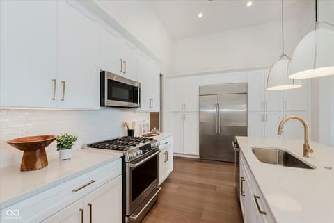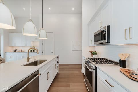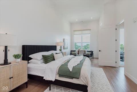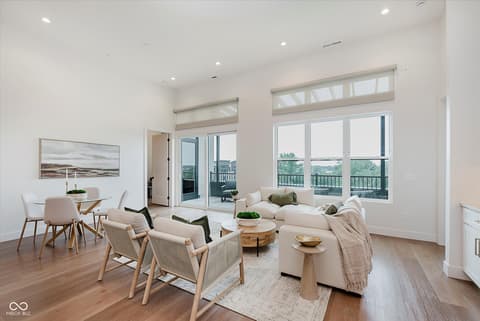 Now accepting Reservations! Experience elevated living with Unit 502, our Model Unit, at The Overture at Proscenium-a luxury condo in the heart of Carmel. This exceptional unit, one of only seven available, offers modern sophistication and privacy. Boasting 13-foot ceilings, Unit 502 features a bright, open floor plan with high-end finishes and hardwood floors. The gourmet kitchen includes top-tier appliances and sleek countertops. Enjoy stunning panoramic views from your private, three-sided balcony-perfect for relaxing or entertaining. A flex space of the back of the kitchen adds a useful space perfect for an office. Each unit also comes with external storage rooms, ensuring ample space for all your belongings. The complex features a gym and bicycle storage facility as an extension to your home. Located just minutes from Carmel's finest dining, shopping, and cultural attractions, Unit 502 combines convenience with serenity. Don't miss this rare opportunity. Schedule a private viewing of this exceptional residence