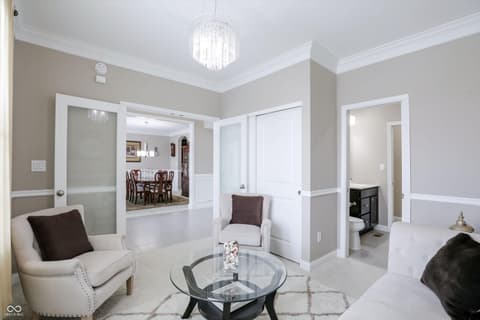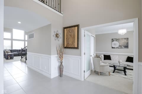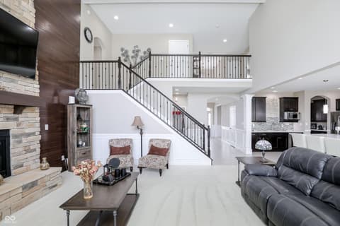 Now offered in one of Fishers' most prestigious communities, HAMILTON PROPER, home to the HAWTHORNS GOLF & COUNTRY CLUB. Tucked inside the GATED enclave of Arbor Glen, this exceptional estate sits on a private .41-acre cul-de-sac homesite, offering a rare combination of privacy, presence & refined living. Spanning over 5,600+ sq ft, this 6 BEDROOM, 6 FULL BATHROOM residence showcases a dynamic floor plan that blends everyday comfort w/elevated style. A grand two-story great rm makes an immediate impression, highlighted by cathedral & coffered ceilings & a stunning floor to ceiling stone fireplace. The fully equipped gourmet kitchen, features a large center island, double ovens, custom cabinetry, WI pantry & a butler's pantry that seamlessly connects to an elegant dining rm. The main level offers exceptional flexibility, w/a private in-law suite & a dedicated office (or optional second guest suite), perfect for multi-generational living or working from home in style. The upper level includes four spacious bedrooms, including a luxurious owners suite w/a sitting area & gorgeous spa bathroom w/dual vanities, a garden tub & incredible WI shower+DUAL WI CLOSETS! Laundry rooms on the main & upper levels add convenience to everyday living. The oversized finished lower level provides all the space needed to entertain a huge group, offering a large recreation area, family rm or media space, exercise rm & full bathroom. A huge utility rm provides plenty of storage! Step outside to a spacious/private outdoor living space, complete w/a built-in kitchen/grilling area, designed for both relaxing evenings & effortless entertaining. Opportunities within this gated section of Hamilton Proper are limited, especially w/this level of space, design & cul-de-sac setting. You will be an easy golf cart ride to the Hawthorns Country Club & just minutes away from top-rated HSE schools, restaurants, shopping, entertainment, interstates & so much more!