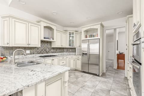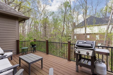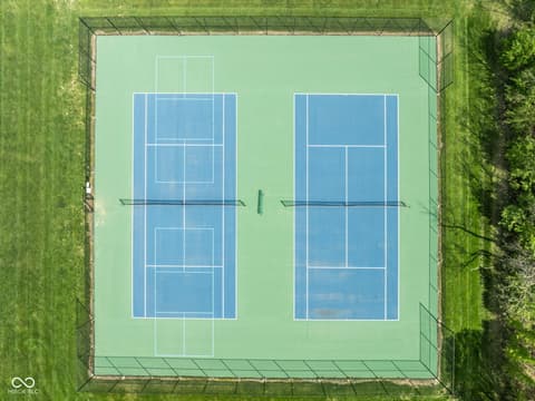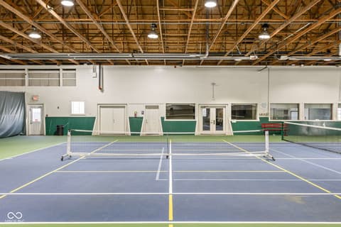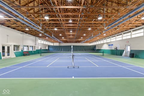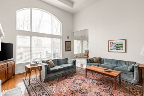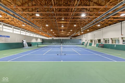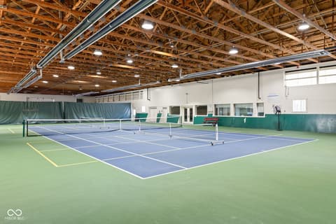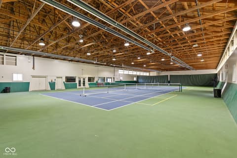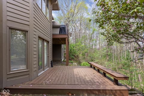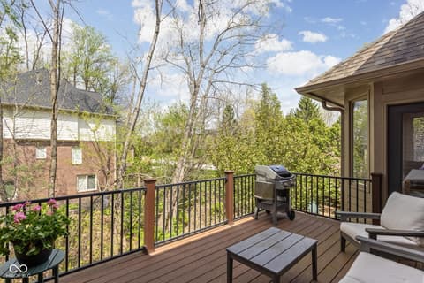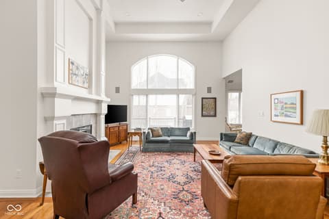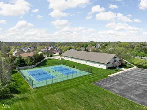 Tucked into the wooded beauty of Austin Oaks, this meticulously maintained 4-bedroom, 4.5-bath home offers over 5,300 square feet of thoughtfully designed living space with the ease of a primarily main-level lifestyle. With a layout that lives like a ranch, the main floor features a spacious primary suite alongside a second bedroom with its own full bath. At the heart of the home, the great room makes a striking impression with soaring 14-foot ceilings and a dramatic wall of windows that flood the space with natural light while framing peaceful, tree-lined views. The open, flowing floor plan creates an effortless connection between living spaces, complemented by a main-level den perfect for a home office or quiet retreat. Upstairs, a private bedroom and full bath offer additional flexibility, while the walkout lower level is designed for both entertaining and relaxation. Complete with a family room, fireplace, wet bar, and generous recreation space, it easily accommodates everything from game nights to workouts. An additional bedroom and full bath, along with approximately 1,000 square feet of unfinished space, provide exceptional storage or the opportunity to expand. Outdoor living is equally inviting, with a large TREX deck overlooking the private, wooded setting-perfect for morning coffee or evening gatherings. Beyond the home itself, Austin Oaks offers a truly unique lifestyle amenity rarely found in Zionsville: a neighborhood clubhouse featuring an indoor tennis court that also converts to indoor pickleball courts, allowing for year-round play. Additionally, there is an indoor and outdoor basketball court, an indoor/outdoor playground, and a pool. Spacious, versatile, and set in one of Zionsville's most desirable communities, this home offers a rare combination of comfort, function, and lifestyle.