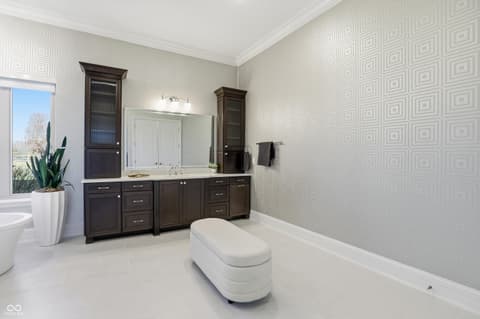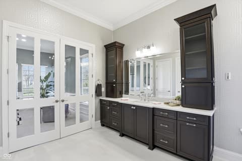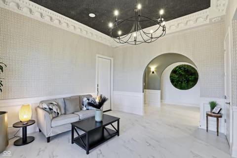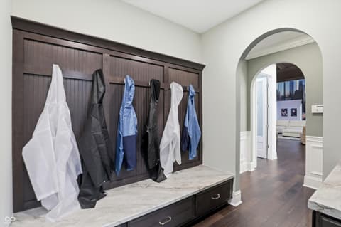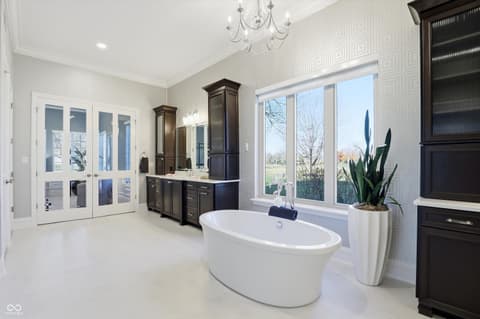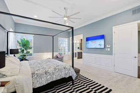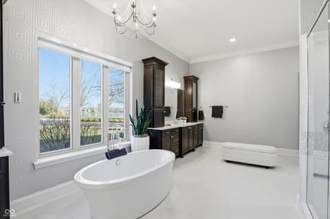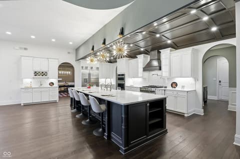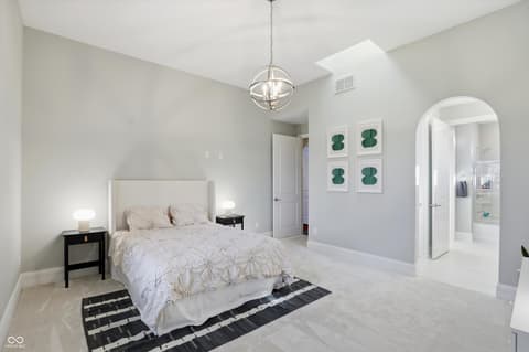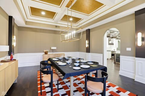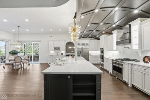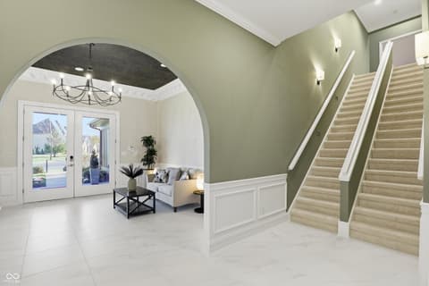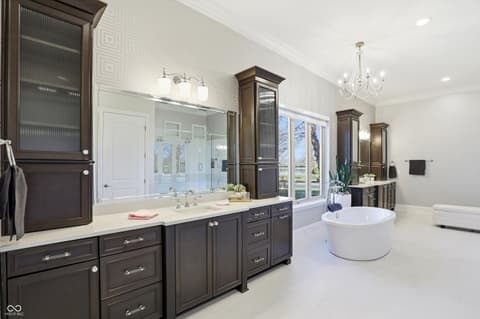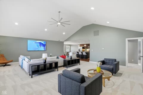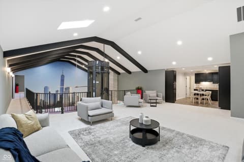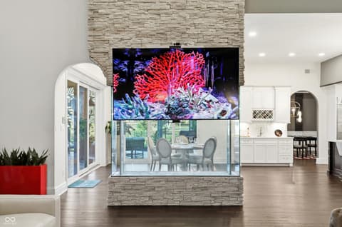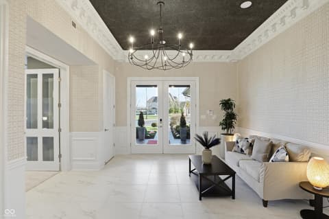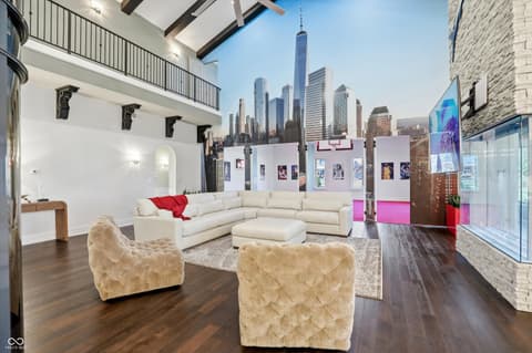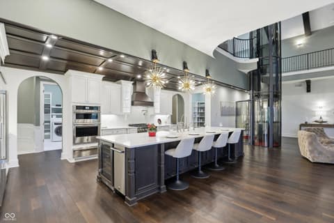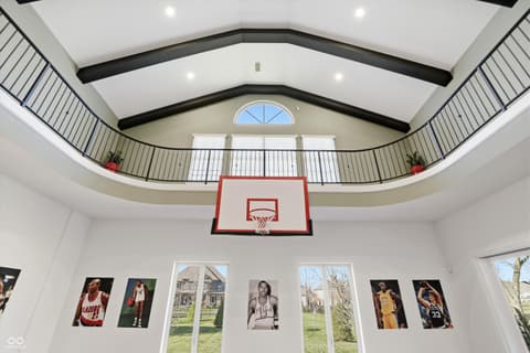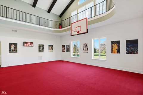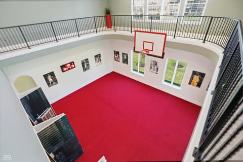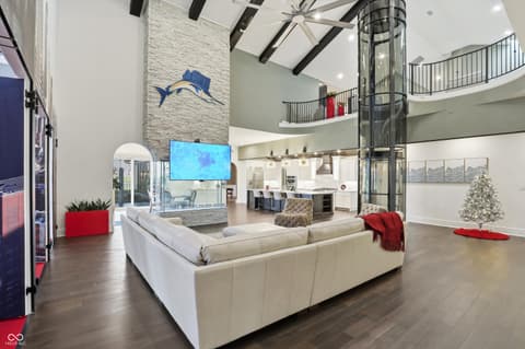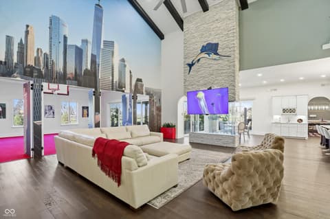 Welcome to your dream home in prestigious West Carmel! Nestled within an exclusive gated 23 lot section of the Waterfront of West Clay community. This unique property offers unparalleled privacy and luxury living while still being in the Carmel School District! This home has been meticulously transformed into a stunning property, boasting over 10,000 square feet of exquisite craftsmanship and design. Step inside to discover a warm and inviting atmosphere, perfect for both entertaining and family gatherings. The main level features two primary suites, along with two additional bedrooms, each with their own en-suite bathrooms. A formal dining room sets the stage for elegant meals, while the stunning gourmet kitchen is a chef's delight, equipped with luxury amenities and a spacious island that opens into the expansive great room. Admire the kitchen wood ceiling and statement pendant lights as you cozy up by the 4-sided glass gas fireplace or enjoy a game of basketball on the indoor court. With over 10 garage spaces, car enthusiasts and hobbyists alike will find ample room for their vehicles or desired workspace. Take the glass elevator to the upper level, where you'll find a private theatre, a secondary kitchen, and a separate luxury apartment ideal for guests or an au-pair. A huge arcade rec room for entertainment and relaxation. This extraordinary property truly stands out in Carmel's real estate market, offering a rare blend of charm, sophistication, and modern amenities. Don't miss your chance to experience the pinnacle of luxury living in Carmel! All furniture and furnishings included in sale!