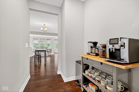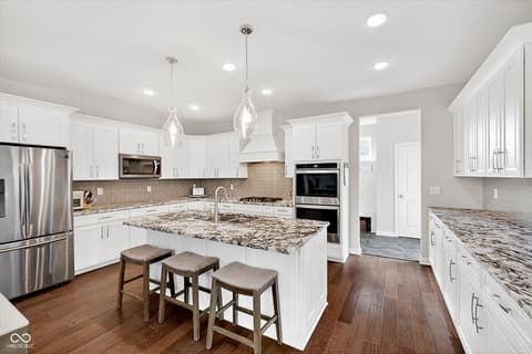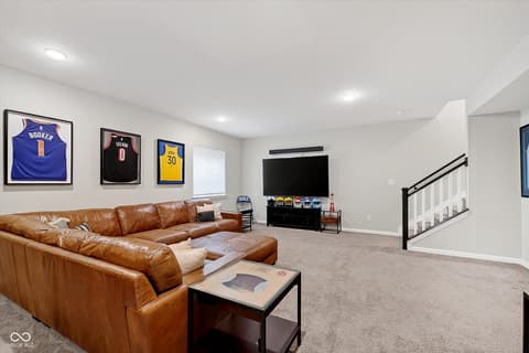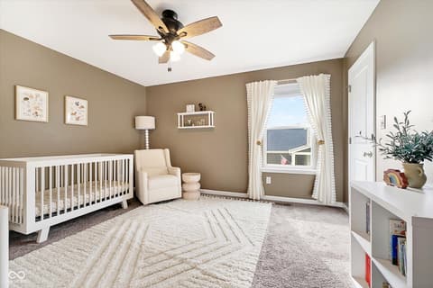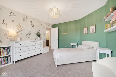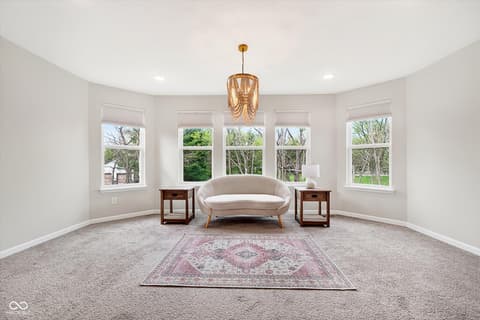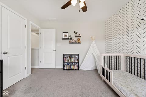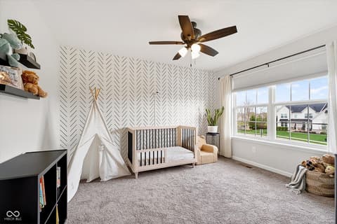 Welcome to this stunning home in Windsor Estates, where thoughtful design and modern comfort come together beautifully. Offering 4 spacious bedrooms and 3 full baths-with a potential 5th bedroom in the finished basement-this home provides flexibility for growing families or multi-functional living. The main level is designed for both everyday living and entertaining, featuring a gourmet kitchen with granite countertops and stainless steel appliances, a large family room highlighted by a coffered ceiling, a private office, a bright breakfast room, and a formal dining room. Upstairs, you'll find four generously sized bedrooms and two full baths. The primary suite is a true retreat, complete with a gracious sitting room-perfect for a nursery, reading nook, or quiet morning coffee. The luxurious en-suite bath includes separate vanities, a tiled shower, a large soaking tub, and an expansive walk-in closet. The finished basement offers incredible versatility. Currently used as a play area, it includes a full bath and an egress window, making it ideal for conversion into a 5th bedroom, additional living space, or even a custom bar or entertainment area. Step outside to a serene backyard with a wooded backdrop, offering privacy and a peaceful setting to enjoy the custom fire pit and patio. Enhanced by custom landscape lighting, this outdoor space is perfect for relaxing evenings or entertaining guests. Located in a highly desirable neighborhood adjacent to the Monon Trail, this home is ideal for biking and outdoor enthusiasts. You're also just minutes from Grand Park Sports Campus, with an elementary school conveniently within walking distance. This home truly has it all-space, style, and an unbeatable location.