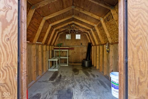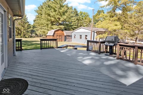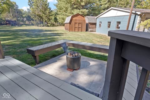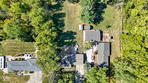 Just a few minutes drive from the Village, this Ranch home offers an opportunity to experience a unique private space in Zionsville. Built in 1970, this property features mature trees, privacy with close proximity to amenities. The interior features an inviting living room with a stone gas fireplace, updated galley kitchen with a plenty of cabinets, solid surface countertops and breakfast room that overlooks rear yard and has access to wood deck, firepit and grilling station. Primary bedroom with French door access to rear Deck, and beautifully updated Primary Bath. Two additional bedrooms, hall bath and office/den. Laundry closet has convenient pass through to Primary Bath. Loads of closet space and spacious garage with a large built-in workbench, plus as additional work room. Spanning just under 2000 square feet of living area, this home provides plenty of room to live and grow. The generous lot offers a private outdoor sanctuary, ready for gardening, recreation, or simply unwinding in the open air. Back yard features garden beds and 2 mini barns. This one-story home combines comfort and practicality. This single-family residence is waiting to become your cherished haven.