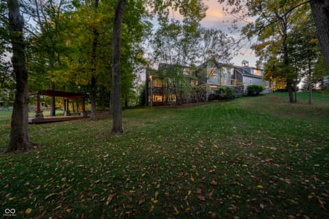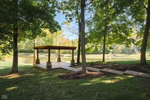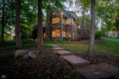 $250,000 TOWARDS A CREDIT OR PRICE ADJUSTMENT! Welcome home to this stunning retreat nestled within a prestigious gated community. Set on 1.25 acres of beautifully landscaped grounds, this property seamlessly blends elegance, comfort, and exceptional attention to detail. A covered front porch welcomes you inside, where a warm foyer leads to a formal dining room-perfect for entertaining. The great room impresses with its coffered ceilings, two-sided fireplace, and a wall of windows that fill the space with natural light while showcasing tranquil views of the open deck and tree-lined backyard. At the heart of the home, the chef's kitchen offers a spacious island, stainless steel appliances, a butler's pantry with an additional sink, and a cozy breakfast nook with built-in seating. A charming harvest room with its own fireplace provides even more space for family gatherings or intimate dinners. The main-floor owner's suite is a true sanctuary, featuring dual closets, a Jacuzzi tub, tiled walk-in shower, double vanities, and peaceful views of the wooded backyard. Nearby, a convenient planning center provides the perfect space for working from home or serving as drop zone. Upstairs, you'll find three spacious bedrooms and a versatile craft or bonus room. The finished walk-out lower level is designed for entertainment and relaxation, showcasing a wine cellar, putting room, exercise room, fifth bedroom, and an expansive open area with a wet bar. Step outside to the covered lower patio and take in serene views of the pond and mature trees. For an even closer connection to nature, stroll down to your private pergola and enjoy peaceful water views from your own backyard oasis. Experience refined living, privacy, and comfort in this exceptional home that truly has it all. $250.00 in decorating allowance.