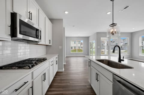 Discover this exceptional new construction villa home at 12580 Churning Court in Noblesville. This thoughtfully designed villa home offers comfortable single-level living with quality craftsmanship throughout. Highlights include 2 bedrooms, 2 full bathrooms, an open-concept living space, an electric fireplace, a study, an extended veranda, a 2-car garage, and much more! The open-concept design creates an inviting atmosphere perfect for daily living and entertaining. The owner's bedroom provides a private retreat with an en-suite bathroom for added convenience. Quality design elements are evident throughout, reflecting M/I Homes' commitment to superior construction standards. This Noblesville neighborhood offers excellent proximity to local parks, providing abundant recreational opportunities for outdoor enthusiasts. The area's well-established community atmosphere makes it an ideal place to call home. As a new construction home, you'll enjoy the peace of mind that comes with modern building standards, energy-efficient systems, and contemporary design elements. The single-story layout maximizes functionality while maintaining an elegant aesthetic. This Quick Move-In villa home represents an excellent opportunity to own a quality-built residence in one of Noblesville's desirable neighborhoods. The combination of thoughtful design, prime location, and new construction features creates exceptional value.