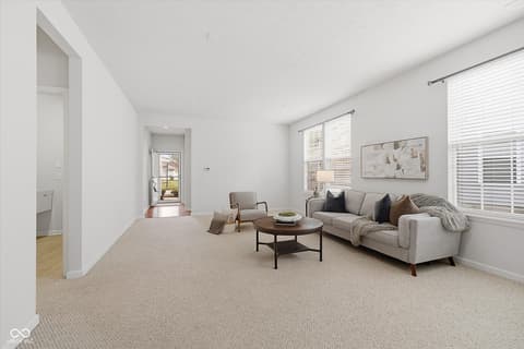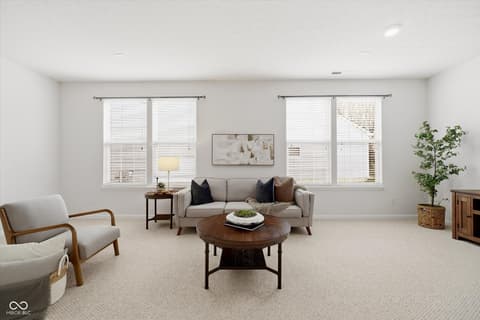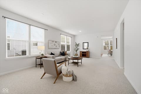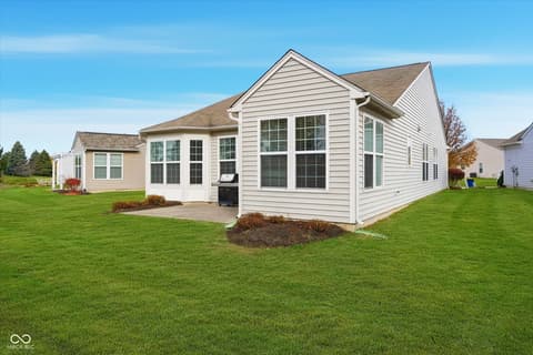 One of the only Private tree-lined homesites on market in Britton Falls featuring BRAND new flooring, and a peaceful setting that is rarely available come together in this beautifully maintained, single-owner home in Britton Falls. Positioned on a quiet lot backing to mature trees and a private common area, this home offers a level of privacy and natural beauty that is hard to find. Inside, the open-concept layout seamlessly connects the kitchen, dining, and great room, creating a space that feels both functional and inviting for everyday living and entertaining. The kitchen is designed to gather, featuring abundant cabinetry, stainless steel appliances, a center island, and generous countertop space for prepping and serving. Just beyond, the sunroom is filled with natural light from a wall of windows and offers serene views of the tree-lined walking path, making it an ideal spot to start or end your day. The primary suite provides a comfortable retreat with a spacious walk-in closet, double-sink vanity, and a walk-in tub designed for ease and accessibility. A second bedroom and versatile front flex room offer flexible space for guests, hobbies, or a quiet home office. Step outside to the private patio and take in the wooded backdrop, with the neighborhood trail just steps away. Fresh interior paint, a 2-car garage, and low-maintenance living with HOA-provided lawn care and snow removal make daily life feel effortless. Living in Britton Falls means enjoying access to The Chateau, with indoor and outdoor pools, pickleball, fitness opportunities, clubs, and year-round events. Conveniently located near Fishers, Fortville, and Hamilton Town Center, this home delivers comfort, connection, and convenience in one of the area's most sought-after communities.