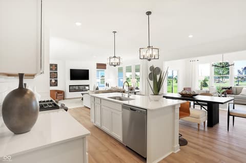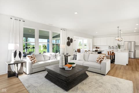 Winterburg Venture is a new community of single-family homes in charming Westfield, IN. Residents can enjoy onsite amenities including a sparkling swimming pool, playground, pickleball courts and more. Residents will enjoy access to all that Westfield and Carmel have to offer, including local shopping centers like Clay Center and A-rated schools in the Westfield Washington School Corporation. This two-story home includes a spacious open floorplan between the living room, dining room and kitchen on the first floor. The first level is also host to a convenient study located off the foyer and a bedroom with a walk-in closet that could be used as a guest space or a den. Don't miss the light filled morning room! Upstairs, the second floor is occupied by four bedrooms, including the owner's suite, and a loft. A 3 car garage adds extra storage. *Photos/Tour of model may show features not selected in home.