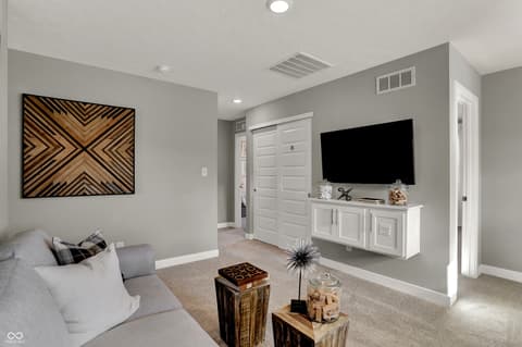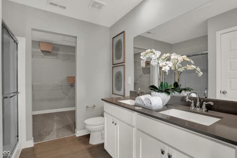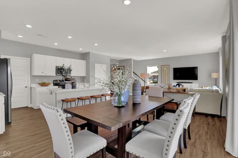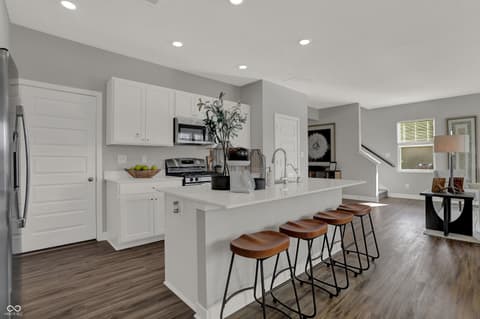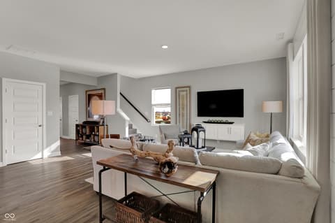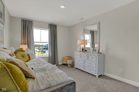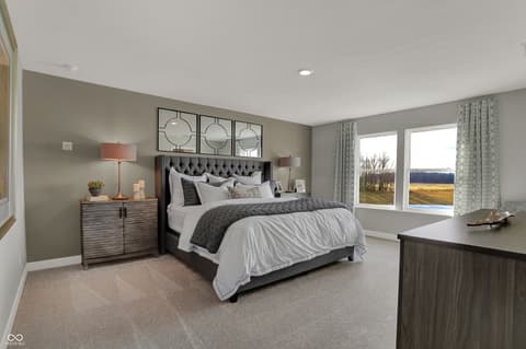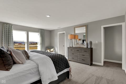 Copperleaf at Finch Creek offers brand-new single-family homes now selling in Noblesville, IN. Community residents enjoy a suburban lifestyle with convenient access to outdoor recreation and entertainment, including ample green space at Finch Creek Park and live concerts at the Ruoff Music Center. Residents can enjoy onsite amenities including a sparkling swimming pool, playground, sport courts and much more. The Broadmoor's open concept on the main floor allows for easy entertainment & enjoyment. Enter the inviting foyer w/powder bath & huge under stair closet. Continue straight back into the generous Great Room, Kitchen & Nook. Upstairs, you will be greeted by a nice loft with 3 secondary bedrooms, hall bathroom, laundry room & the spa like owner's retreat which includes double vanities & a WIC. *Photos/Tour of model may show features not selected in home.