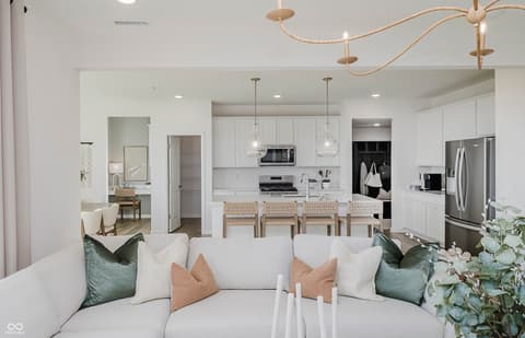 Discover the Dakota floorplan by Pulte Homes, set within the inviting Parkside at Finch Creek community. Designed with both comfort and practicality in mind, this home offers a layout that suits a variety of lifestyles. At its center is a beautifully appointed kitchen featuring white cabinetry, Sparkling White quartz countertops, stainless steel gas appliances, and a layout that connects effortlessly to the cafe dining area, sunroom, and gathering room-ideal for cooking, entertaining, or simply unwinding. The main floor also includes a flex room, perfect for a private office, play area, or reading nook. Nearby, the Pulte Planning Center provides a dedicated spot to keep schedules, homework, and household tasks neatly organized. Upstairs, the owner's suite serves as a serene retreat with a spalike bathroom offering a tiled shower and a generous walkin closet. Three secondary bedrooms ensure plenty of room for family or guests, while the conveniently placed laundry room helps simplify daily routines. The spacious loft offers a perfect secondliving area, ideal for relaxing, working, or entertaining. Adding to the home's functionality, the extended garage provides extra space for vehicles, storage, or hobby essentials. Enjoy top-tier amenities, including a Community Clubhouse with an Expansive Covered Back Deck with Seating Areas, Community Pool, Half-Court Basketball, Two Pickleball Courts, Fully Equipped Fitness Center, Meeting Room Available for Reservation, Indoor Gathering Space Community Prep Kitchen, and an Outdoor Playground. Just minutes from I-69 and Hamilton Town Center, you'll have easy access to shopping, dining, and entertainment. Experience the perfect balance of community charm and modern convenience at Parkside at Finch Creek.