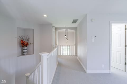 Location, Location, Location - This stately home is located in a quiet Carmel cul-de-sac and offers everything you need to appreciate the setting. There is an all season sunroom so you can soak in the tranquil surroundings of the private backyard with no house behind it to spoil the view. The contemporary eat-in kitchen features a center island, breakfast bar and double ovens. The stunning two-story living room has vaulted ceilings and a fireplace for ambiance on cold days. Luxurious main level master includes custom built-ins and a secluded master bath with a garden tub. Upstairs are 3 extra large bedrooms and a cozy loft. The finished walk-out basement with a private office is bright and feels like a true part of the home. There is more than enough room for a home gym, large toys or a home theater. Ample driveway and parking.Tenants rights apply until 12/31/2026.