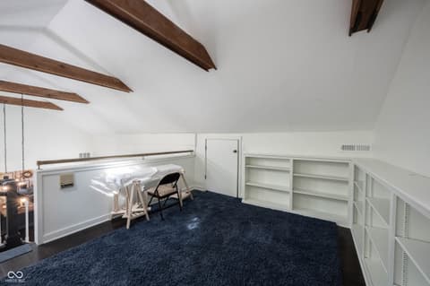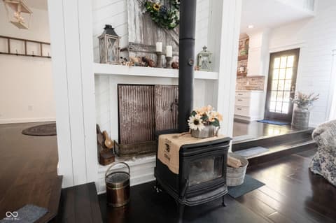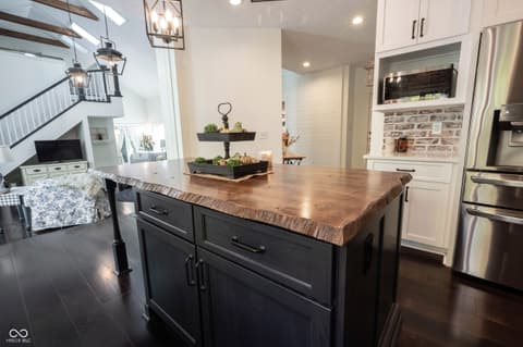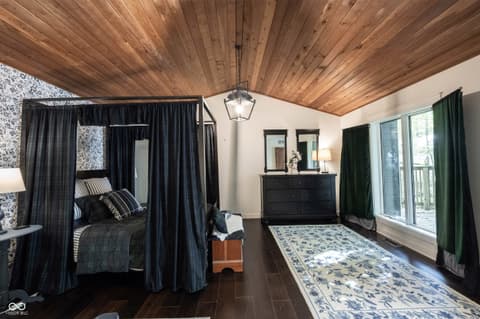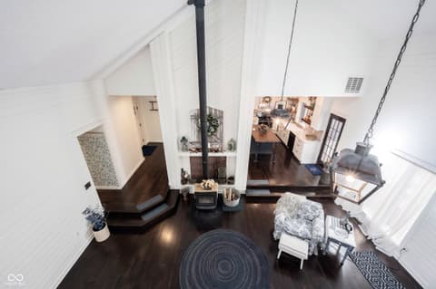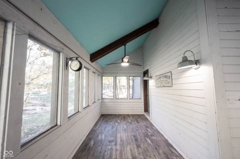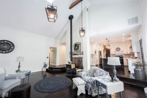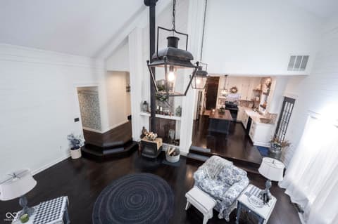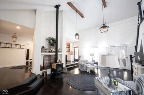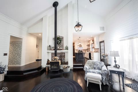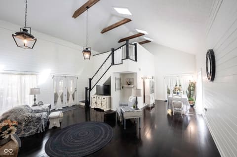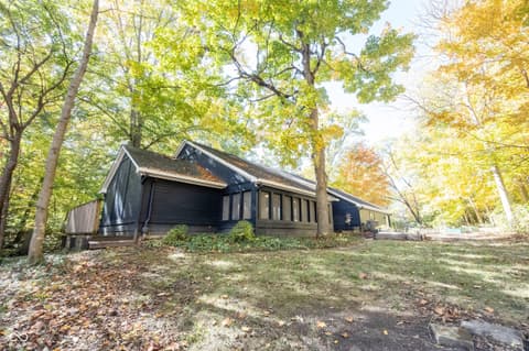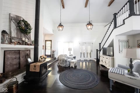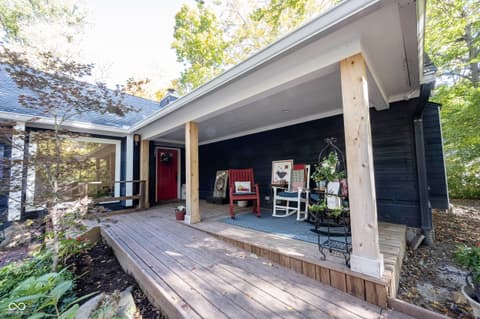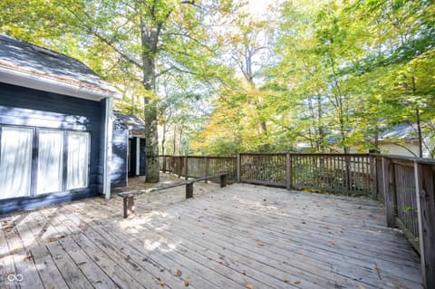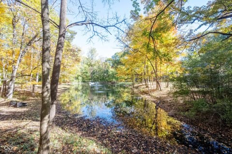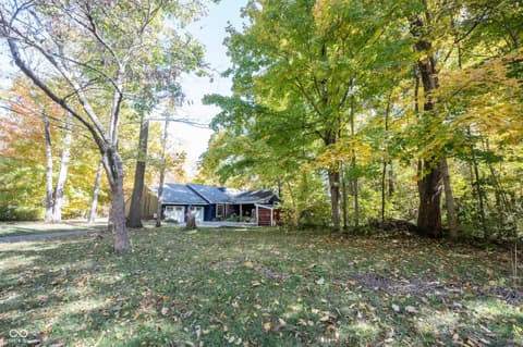 Wow! Unique ranch on private wooded acreage in Fishers, Hamilton County AND HSE School System! Completely renovated and updated - this "Brown County" Retreat located on 1.17 wooded acres with a stocked pond...private 3 Bedroom/2 Full Bath retreat...soaring 2 story Great Room w/ cathedral ceiling and open stained beams, tongue and groove painted walls overlooks fabulous new custom Kitchen featuring Quartz Countertops, Soft Close Doors/Drawers, Doublet Roll Out Shelves, Full Overlay Cabinetry, Brick Backsplash, SS Appliances with a contrasting Breakfast Island topped with a Solid Wood "live edge" Countertop! Engineered Hardwoods throughout enhance the warmth of this beauty! Completely renovated Primary and Second Bathrooms. New HVAC System and Ductwork, Electric Water Heater, Interior Lighting, Plumbing Pipes...see attached Updates and Feature Sheets for more details too numberous to mention! Spacious Primary Suite...tongue and groove stained Cathedral Ceiling, ensuite Bath/Walk In Closet plus access to deck and screen porch. Multiple decks on 3 sides provide countless opportunities to enjoy the privacy this unique home has to offer. 4th Bedroom converted to a Bonus Room w/remodeled ensuite Full Bath - armoir closet. This cozy sanctuary offers so many options for personalizing the space to fit your needs...a Loft for hobbies, office, exercise, playroom...Den/Library w/board and batten wall overlooking the woods and front covered porch - perfect for a formal Dining Room if needed. Mud Room and spacious Laundry Room with large picture window overlooking the backyard finish out this flexible respite. Huge 2 Car Finished Garage w/new Garage Doors/Opener and large storage area PLUS attic storage! The stocked pond shared with the other "pond" neighbors tops off this amazing opportunity! Loft square footage not by Assessor. See attached Updeated Features plus additional attachments.