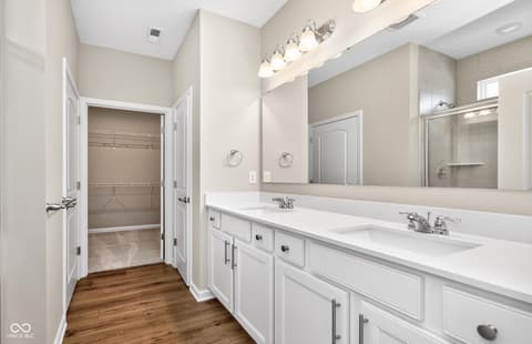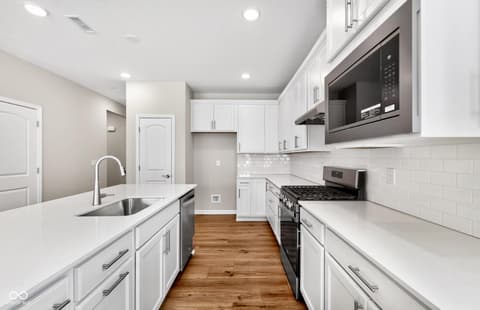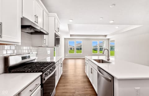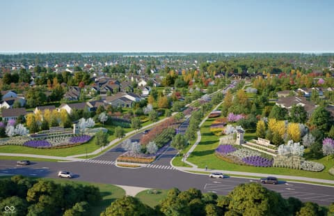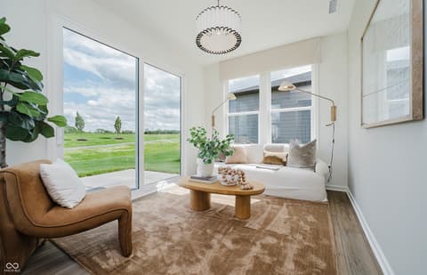 Welcome to the Vista floorplan by Pulte Homes, nestled in the desirable Finch Creek community by Del Webb. Designed with effortless entertaining in mind, this thoughtfully crafted ranch-style home features an open-concept layout that seamlessly connects the gathering room, cafe, and kitchen. A spacious kitchen island takes center stage, complemented by stunning Carrara Morro quartz countertops, 42" white cabinetry, brushed nickel hardware, stainless steel gas appliances-making it a chef's dream. A sun-filled day-lit sunroom offers the perfect spot for morning coffee or afternoon relaxation, while luxury vinyl plank flooring adds both style and durability throughout. Retreat to the Owner's Suite, where you'll find a tiled walk-in shower, dual vanity, and a walk-in closet to meet all your storage needs. The Finch Creek by Del Webb community is where lifestyle takes center stage. Residents enjoy TV streaming and internet included, plus convenient seasonal opening and closing of irrigation systems. The resort-style amenities include indoor and outdoor pools, a state-of-the-art fitness center, pickleball and bocce ball courts, and a clubhouse featuring social programming led by a full-time Lifestyle Director. A high-tech simulation room offers virtual golf and other sports, while 8.5 miles of walking trails, pocket parks, and a dog park encourage an active, outdoor lifestyle. Ideally located just minutes from I-69, Hamilton Town Center, top-rated hospitals, golf courses, and downtown Noblesville, Finch Creek by Del Webb offers the perfect blend of tranquility, activity, and convenience.