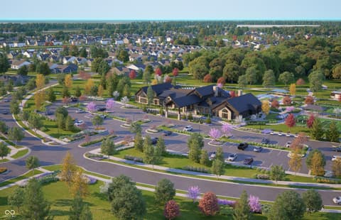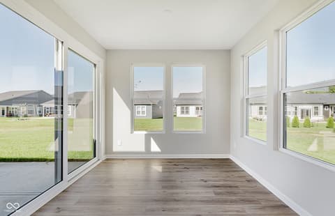 Experience the elegance of the Prosperity floorplan in Finch Creek by Del Webb, a premier 55+ community. This thoughtfully designed home features a modern kitchen with 42" white cabinetry, Artic White Quartz countertops, built-in stainless steel oven and microwave, gas cooktop, and a spacious island-ideal for both everyday meals and entertaining. The kitchen transitions effortlessly into the gathering room with its elegant tray ceiling and welcoming cafe dining area, while the adjacent sunroom provides a sunsoaked retreat for relaxation. The luxurious owner's suite offers a peaceful retreat, complete with a tiled shower, double-sink vanity with quartz countertops, and walk-in closets. The secondary bedroom enjoys easy access to a conveniently located full bath. A versatile flex room, enclosed with doors and situated just off the foyer, can serve as a home office, study, or additional bedroom to suit your needs. The Finch Creek by Del Webb community is where lifestyle takes center stage. Residents enjoy TV streaming and internet included, plus convenient seasonal opening and closing of irrigation systems. The resort-style amenities include indoor and outdoor pools, a state-of-the-art fitness center, pickleball and bocce ball courts, and a clubhouse featuring social programming led by a full-time Lifestyle Director. A high-tech simulation room offers virtual golf and other sports, while 8.5 miles of walking trails, pocket parks, and a dog park encourage an active, outdoor lifestyle. Ideally located just minutes from I-69, Hamilton Town Center, top-rated hospitals, golf courses, and downtown Noblesville. Photos of a similar model.