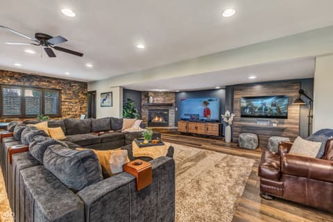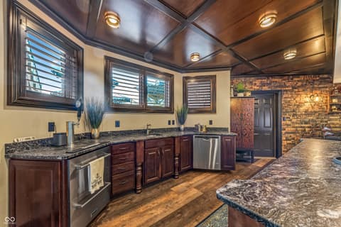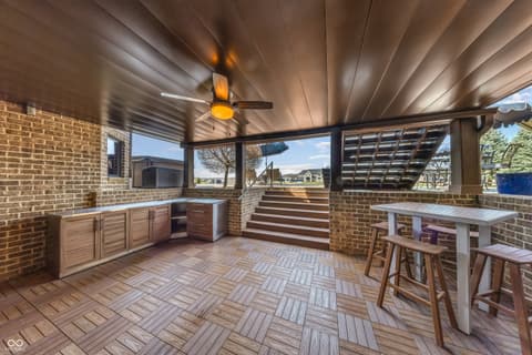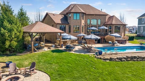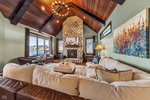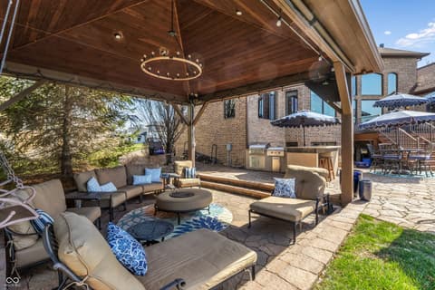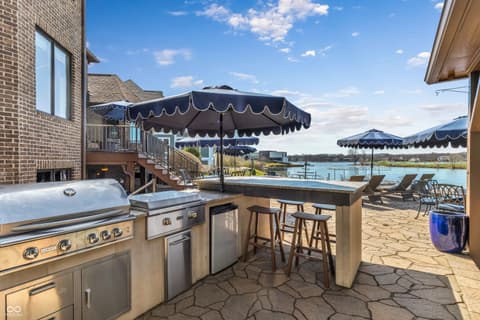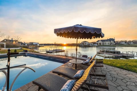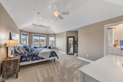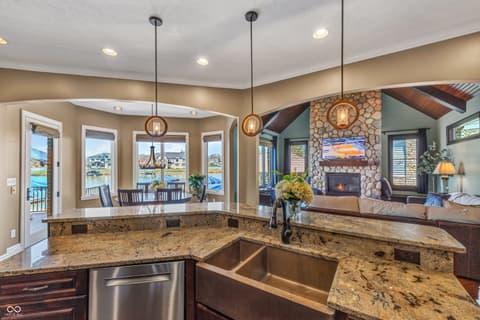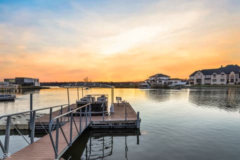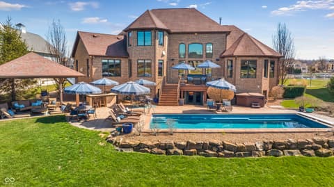 Rare Find on Geist - 1/2 Acre Lot - Original Owner WATERFRONT Custom Built Tom Grinslade in Cambridge on Geist. Why will you love this home if you are looking for a home on Geist - The Home is Situated on a Peninsula Lot - Deep Water Cove (30 plus feet) Offering Incredible Main Body Sunset Views While Sheltered From the Mainbody Waves. The Main Level Design is Exceptional Featuring an Incredible Cozy Hearth Room Featuring a Cobblestone Fireplace and Wood Beam Accented Ceiling, 2 Story Greatroom with Outstanding Views of Geist, Office with Built-in Shelving and Custom Woodwork, Main Level Primary Suite that Exits to the Balcony with Stairs Down to the Pool Deck and Hot tub just below, Chef's Kitchen with Gorgeous Custom Kitchen Cabinets, Home Hub with Built-in Desk, Walk-in Pantry, Laundry Equipped with 2 Sets of Washers & Dryers, Custom Lockers, Custom Dining Room & more! Upstairs You Will Find NEW Carpet Throughout, Its own HVAC System, 4 Generous Bedrooms are Upstairs with Walk-in Closets & 3 Full BA. The 4th Bedroom is Massive with 3 Built-in Twin Beds with Storage Below. The Lower Level is Simply a Show Stopper and Very Well Thought Out for Lake Living and Entertaining! The Flooring Has been Updated to LVP which is Conducive for Wet Feet! The Full Wet Bar is just inside one of the exterior doors and the Entertaining Area off the Bar Features The Coolest Bourbon Barrel Wall (A Must See) with a Large Family Room, Game Area, Fireplace, 2 TV Screens. Additionally you will find a GOLF SIMULATOR ROOM, Ping-Pong/Pool Table Area, Exercise Room, Storage, Full Bath, Private Bedroom & Lots of Storage. Outside Features a Watertight Area Below the Balcony featuring Built-in Serving Stations, Built-in Grill Area, an Inground Pool with Benches (see photo), Hot Tub, Firepit, A Very Fun Cabana with Hanging Screens and Swings, Which the Cabana and the Firepit are the Best Places to watch the Sunset! A Floating Dock, Boat Lift and 2 Wave Runner Ports are Included.