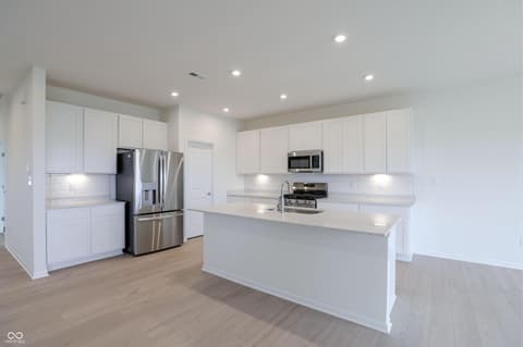 Olthof Homes presents the Lakewood! Welcome home to this beautifully designed 2,182 sf ranch offers the perfect blend of space, comfort and functionality. This 3-bedroom, 2-bathroom home features an open-concept floor plan ideal for both everyday living and entertaining. The spacious great room flows seamlessly into the kitchen and dining area, creating a bright and inviting atmosphere. The kitchen is the heart of the home, complete with ample cabinetry, generous counter space, walk-in pantry, and a layout perfect for gathering. The private primary suite offers a relaxing retreat with a well-appointed en-suite bathroom and a large walk-in closet. An office and two additional bedrooms provide flexibility for guests, or hobbies. A three-car garage adds convenience and plenty of storage space, while the single level layout offers easy living. This thoughtfully designed ranch combines modern comfort with practical living - ready to fit your lifestyle. The community is incorporated by the City of Westfield, Westfield Schools. Upgrades: Maple Painted White Cabinets, Backsplash in Kitchen, Luxury Vinyl Plank in high traffic areas, Tiled Shower in Primary Bathroom, Double Sink in Primary Bathroom, Contemporary Fireplace, 3 Car Garage.