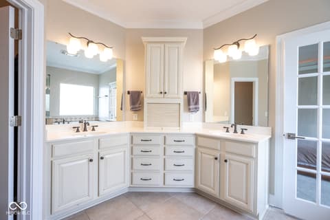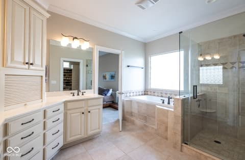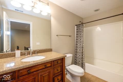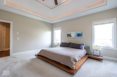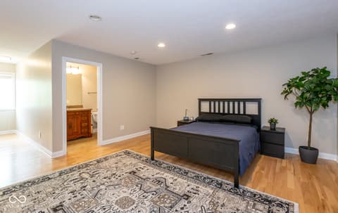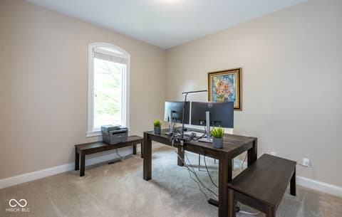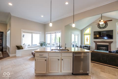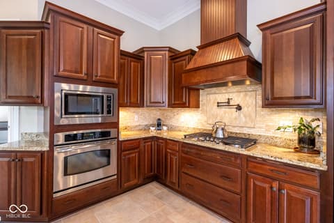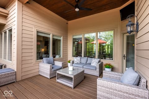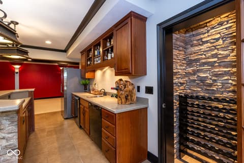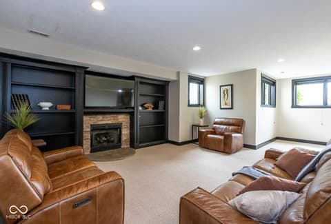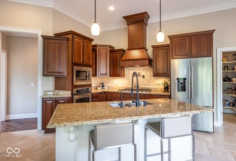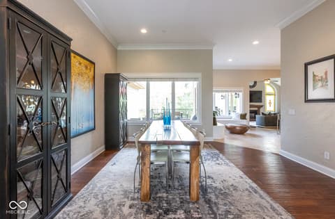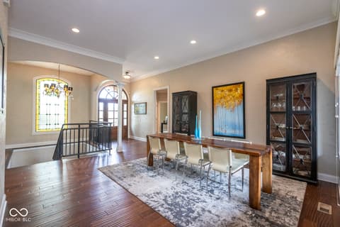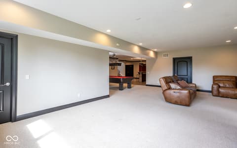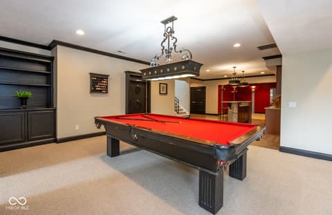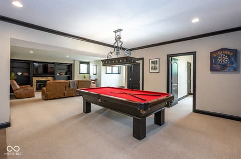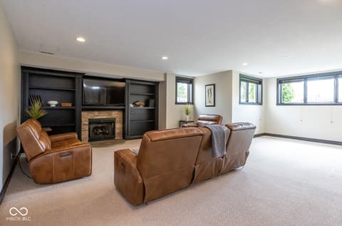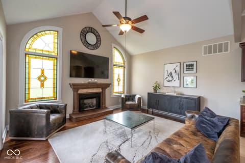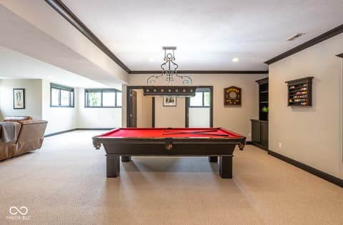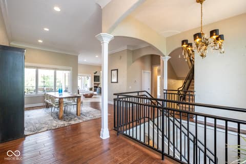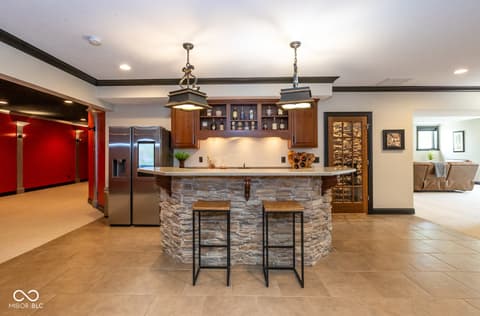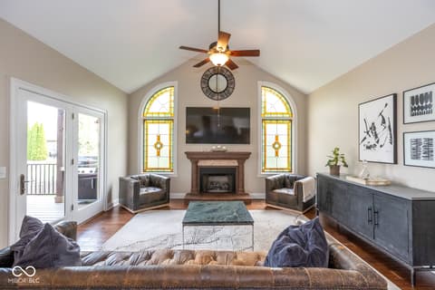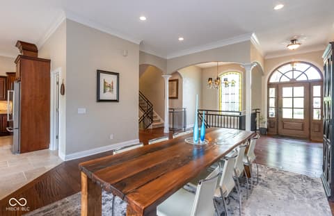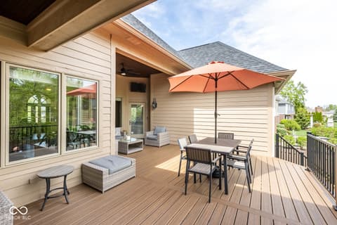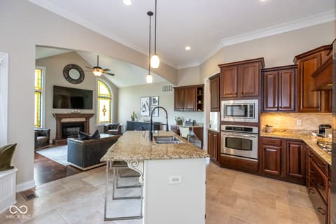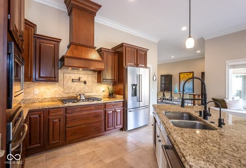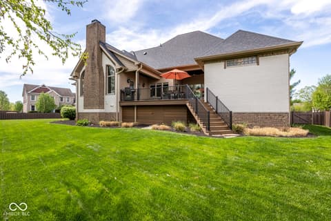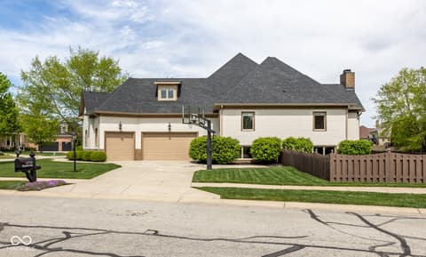 Stunning 6,000+ sq. ft. move-in ready home in the heart of Fishers, located in the highly sought-after Hamilton Southeastern School District, just a short walk to Geist Reservoir and minutes from Cambridge subdivision, featuring a main-level primary suite with tray ceilings, built-in closets, and a thoughtfully designed layout offering 4+ bedrooms, including the primary suite on the main level, a bedroom in the daylight basement, an upstairs bedroom with its own full bath, and a versatile bonus room above the garage with a closet-perfect as an additional bedroom, game room, or flex space-plus a private 5th bedroom suite, 5-inch hand-scraped hardwood floors, ceramic tile flooring, a sophisticated marble fireplace, 100% mahogany beveled glass entry, a daylight basement, wine cellar, whole-house water filtration system and water softener, newer appliances, newer roof, dual HVAC systems, and a low-maintenance Trex deck-perfect for modern living and entertaining.