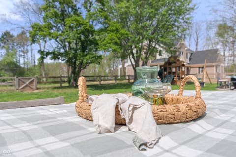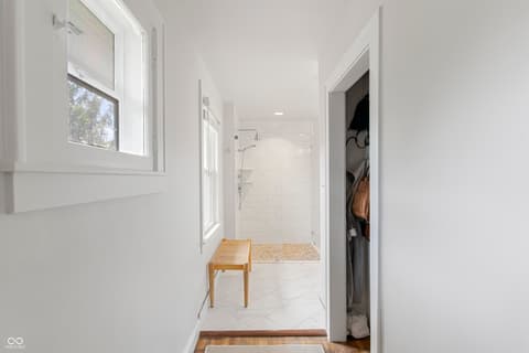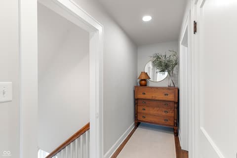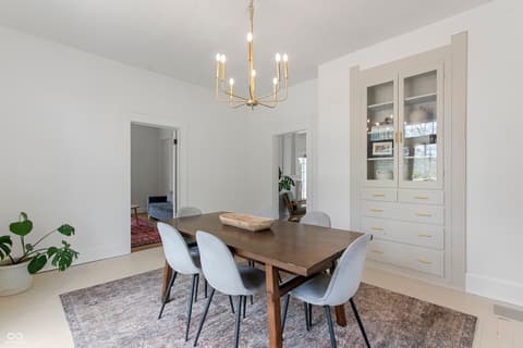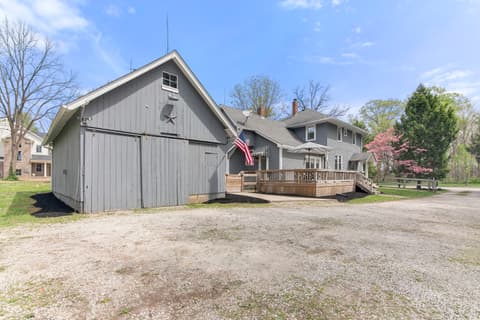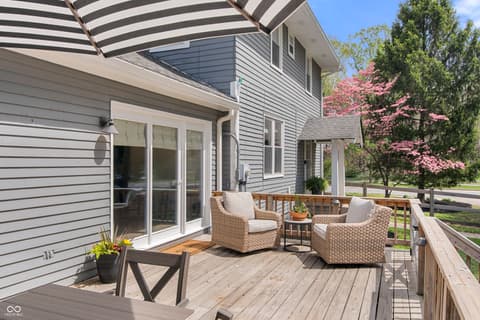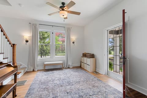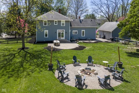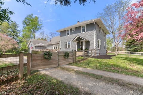 East Carmel Rare Opportunity! Beautifully renovated farmhouse tucked away on a 1.25 acre mature wooded lot in one of the most sought after locations in Carmel is a unique chance to own space, privacy & possibility in an area where opportunities like this are few & far between. This is a listing that cannot be duplicated, as it is one of a kind. Once on the lot, you will feel all 1.25 acres with an undeniable peace & natural sense. It's a property where life is simple, easy, welcomes your lifestyle & hosting is a dream. This well known home is renovated to modern yet maintains the special character of the original home. Enter to iconic original wooden staircase, true hardwoods throughout home, oversized windows bring in so much natural light & 10ft ceilings make the home airy & rich in character; Main level features: grand foyer, spacious living room, dedicated dining room w/ original built-in credenza, stunning kitchen w/ upgraded finishes, gas cooking & space for eat-in kitchen, BR 4 (bedrm/office/playrm/gym), full bath 3, laundry rm & mudrm. Floorplan flows easily in organic, effortlessly livable way. Outdoor living spaces are pride & joy- flow seamlessly & incorporate everyday living- all spaces are in fully enclosed fence for pets/kids. Front deck right off kitchen is filled w/ warm sunshine during day. Back xl concrete patio & large, flat yard off dining room catch most beautiful evening light -spend countless nights bonfiring, sunsetting, relaxing & hosting. Upstairs find 3 bedrms & 2 full baths. Primary bedrm w/ aesthetically renovated full bath ensuite: Glass shower/soaking tub/tile floor/walk in closet. Out building/barn for storage has power. Enjoy Carmel lifestyle: parks/parade/festivals/live music/farmers market/dining/miles of trails. A simple walk to Starbucks, Patachou & school from your doorstep. This home is perfect spot to feel both tucked away with room to breathe & part of something vibrant. Welcome Home!