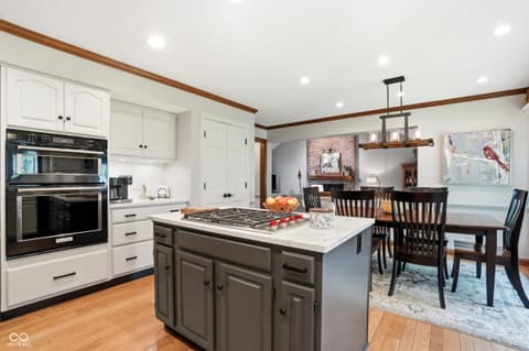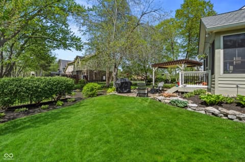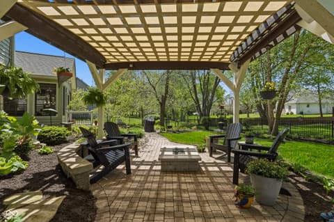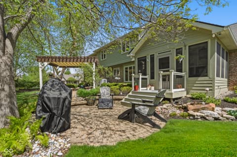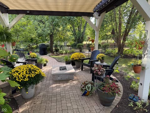 Welcome to a home where every detail has been meticulously upgraded for modern luxury and peace of mind. This stunning property boasts a newer roof complete with gutter guards, downspouts, and leaf guards, ensuring long-term durability.The outdoor living space is a true sanctuary, featuring professional hardscaping and landscaping that includes a paver patio with a custom firepit, a tranquil water feature, and elegant accent lighting. The lush yard is maintained by a sophisticated irrigation system, while a stylish pergola with a speaker hookup provides the perfect setting for entertaining. The heart of the home has been completely transformed with a gourmet kitchen featuring custom cabinets, premium quartz countertops, and high-end appliances like a Wolf cooktop. Thoughtful touches include under-cabinet puck lights, upgraded hardware, and a reverse osmosis water system. Inside, comfort meets style with custom drapes and automatic shades in part of the kitchen and dining room. Relax in the 3-season porch featuring EZ Breeze windows and audio speakers. From the metal black fencing to the Navien tankless water heater, this home is packed with premium updates designed for a sophisticated lifestyle.