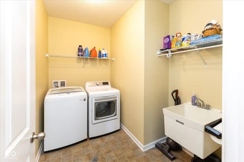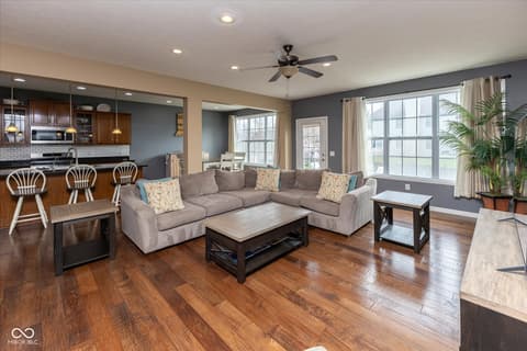 Welcome to this gorgeous home in the Fishers premiere neighborhood of Anderson Hall. Immediately, you will be greeted by the charming curb appeal, well-manicured yard, and professional landscaping/exterior lighting. Upon entering, you are drawn to the open floor plan with 9-foot ceilings, can lighting, tasteful engineered hardwood flooring paired perfectly with granite kitchen countertops and 42" cabinets, a custom-built butler's pantry, and stainless appliances including a gas range. Impressive features also include spacious bedrooms with walk-in closets, finished basement with 9-foot ceilings/half bath/massive storage area, garage has 10 feet of extra depth for plenty of storage, and a comfortable concrete patio that has been professionally coated to look great for many years. This property sits directly across from an island with wide open green space where kids can spread out, and just a couple minute walk to the fabulous neighborhood pool.