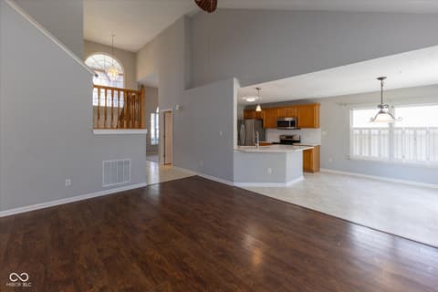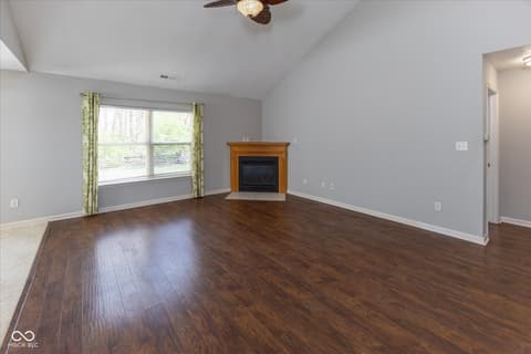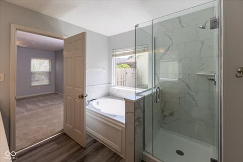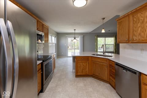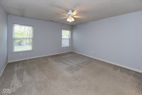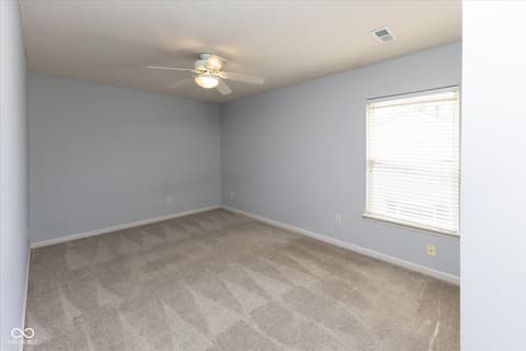 Beautiful 3-bedroom, 2-story single-family home located in the sought-after, friendly Haverstick neighborhood within top-rated Carmel schools-just a short walk to Prairie Elementary. Enjoy exceptional community amenities including a pool, basketball court, tennis & pickleball courts, playground, trails, parks, ponds, and nature preserves, with approximately 26 acres of green space. Conveniently located near shopping and dining. The main-level primary suite features a spacious walk-in closet, garden tub, and newly updated separate shower with quartz countertops. Upstairs offers two additional bedrooms plus a versatile den that can easily be converted into a fourth bedroom. The home features a bright Great Room with gas log fireplace, cathedral ceiling, two-story foyer, and a formal dining room. Enjoy a very private, wooded backyard with a cement patio-perfect for relaxing or entertaining. Recent updates include: fresh exterior paint (2026), new carpet in dining room and stairs (2026), new quartz countertops and backsplash (2026), updated shower tile and quartz (2026), roof (2023), HVAC (2021), water heater (2025), and newer appliances (2024: refrigerator, cooktop, microwave).
