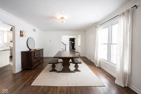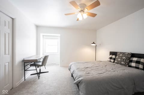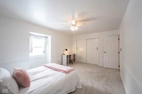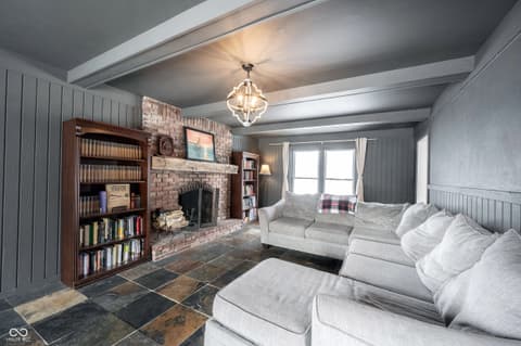 Amazing opportunity to own a spacious 5 bed, 2.5 bath home in Carmel! Step inside to discover fresh interior paint throughout, updated flooring, and a beautifully refreshed kitchen featuring marble countertops, a quartz-topped center island, slate floors, a hidden pantry behind barn doors, chef's appliances, and an inviting breakfast nook-perfect for entertaining. The main level offers a color-drenched family room/library with a wood-burning fireplace, a formal living and dining room, and a guest bedroom-all highlighted by beautiful hardwood floors. Upstairs, the renovated primary suite boasts updated LVP flooring and an upgraded full bath. The hallway also features new LVP, while the additional guest bedrooms offer cozy new carpet for added comfort. Major mechanical updates include a new furnace installed on 1/9/26. The large, partially finished basement provides flexible space for a recreation room, home gym, office, or storage. Outside, enjoy a brand-new deck and fire pit surrounded by professional landscaping, with a new 6' privacy fence at the rear property line scheduled for installation in the coming weeks-ideal for enjoying the mature, tree-lined neighborhood. Within walking distance to top-rated schools, parks, and Carmel Midtown, this move-in-ready home truly offers it all. Beautifully updated throughout-welcome home!