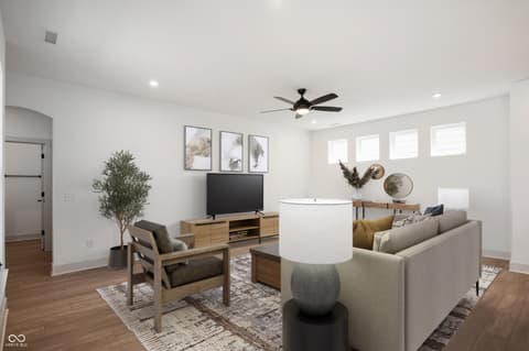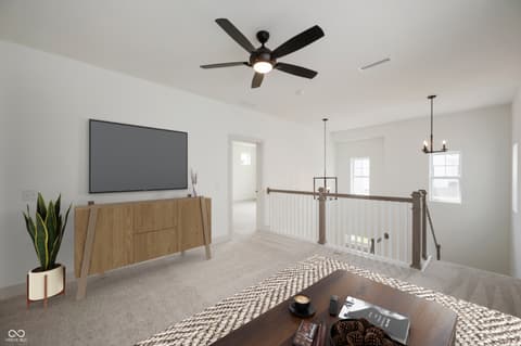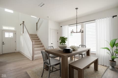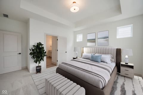 Situated on a desirable corner homesite, the Holbrook plan features a grand two-story entry and an open loft upstairs, offering both style and flexibility. This home is perfect for those seeking low-maintenance living in a beautiful new community. Enjoy thoughtfully selected upgrades throughout, including a tray ceiling in the 9-foot owner's retreat that elevates the space to 10 feet, custom handrails, quartz countertops, and luxury vinyl plank flooring throughout the first floor. A covered back patio provides the perfect space to relax and unwind. Residents can enjoy a peaceful setting surrounded by wooded preserves, scenic ponds, and walking trails. Marilyn Woods is part of the highly rated HSE School District, including Fishers Junior High and High School, making it an ideal place to call home.