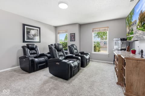 This Fishers gem offers a perfect blend of comfort and style. The main level features hardwood floors throughout, a dedicated dining area, cozy eat-in kitchen and a family room with a gas fireplace, creating an inviting atmosphere for all. Upstairs, a generous secondary living area currently serves as a premier media space. The primary suite is a true retreat, boasting a spacious walk-in closet and an en-suite bathroom complete with double sinks, a dedicated makeup area, and a walk-in shower. Outside, the private oasis features a porch with room for outdoor dining and a hot tub, and a yard large enough for an outdoor firepit. Situated in a vibrant community, you'll enjoy access to two playgrounds and a basketball court. This home is ideally located near local shopping and dining. Schedule your showing today!