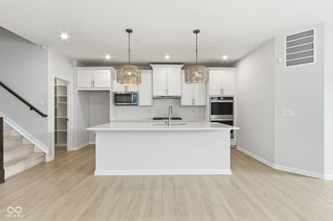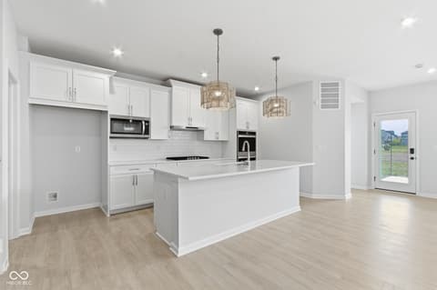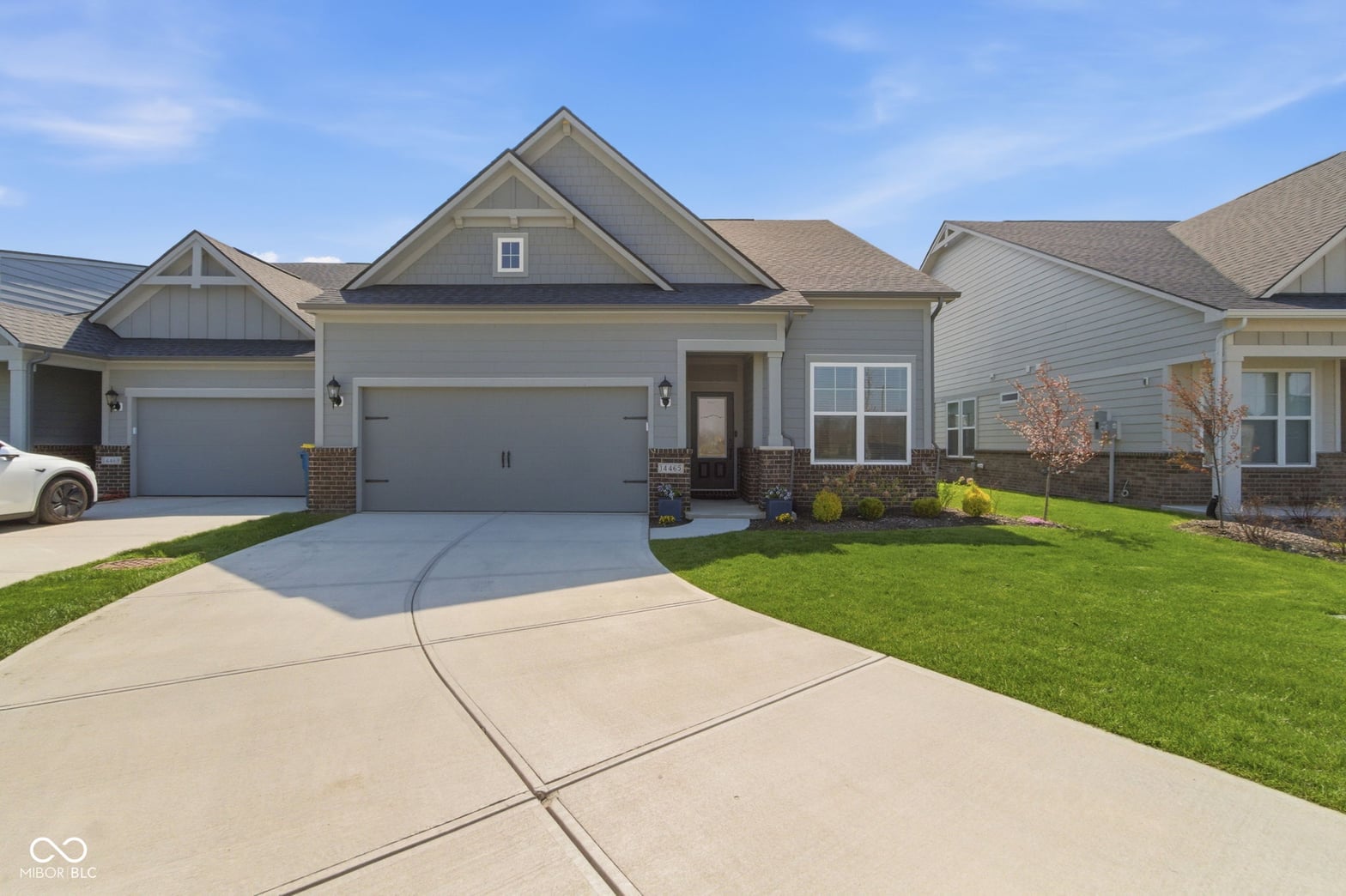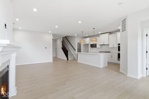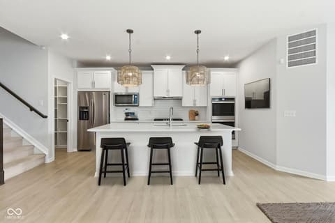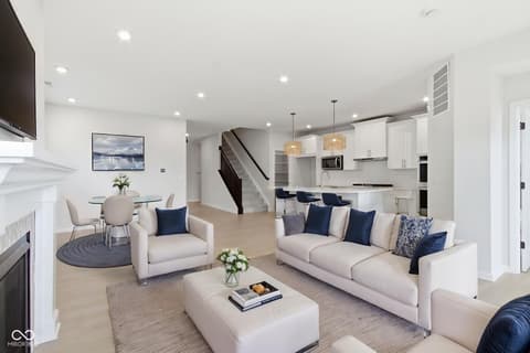 A distinctive home, located at 14465 Shrawley CT in CARMEL built in 2023, presents itself as an attractive property in great condition. This residence, encompassing two stories, offers a refined living experience from the moment one considers its thoughtful design. The culinary space is designed for both aesthetic appeal and practical use, featuring a sophisticated backsplash that complements the shaker cabinets and stone countertops. A stovetop and double oven enable diverse culinary creations, while a large kitchen island provides ample workspace and a convenient kitchen bar offers a casual dining option. Within the open floor plan, the inviting living room offers a comforting ambiance, centered around a charming fireplace that provides a focal point for relaxation. Personal comfort is prioritized within the three bedrooms, where serene spaces await. The Primary bedroom, located on the main level is further enhanced by including a customized walk-in closet for organized storage, and an ensuite bathroom, providing a private retreat. The home offers three full bathrooms and one half bathroom. Extending across 2300 square feet of living area, this home thoughtfully includes a dedicated laundry room for everyday ease just off the Primary Bedroom. Outside, a private patio provides a tranquil setting for enjoyment, all within the peaceful embrace of a rural area. This home offers a tranquil living environment, meticulously crafted for comfort and convenience. Post Closing Improvements Exceed $20,000.