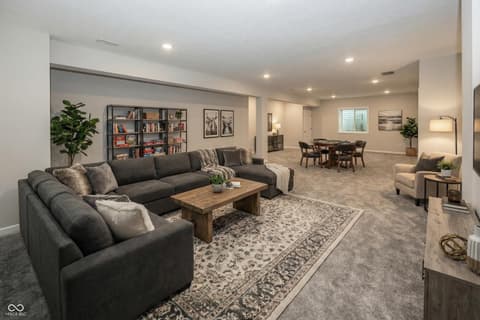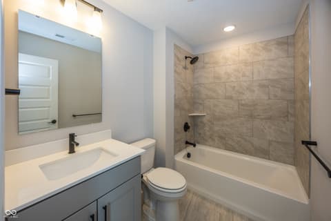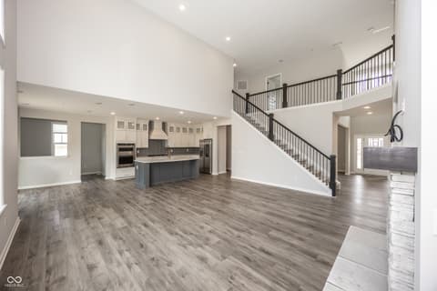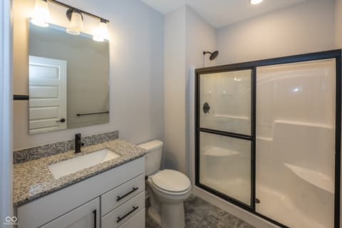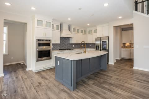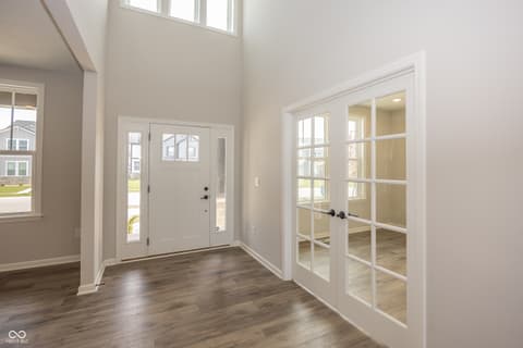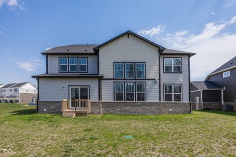 Almost new home in West Carmel. Step into the grand two-story foyer that sets the tone for this beautifully designed home. Perfect for entertaining, the home has open-flow layout that leads to a gourmet kitchen with built-in gas appliances Quartz countertops and a casual dining cafe. The kitchen overlooks 2 story gathering room. A formal dining room with a butler's pantry offers additional hosting space. Flex room with doors, could be formal Living Room or an office or playroom. Guest bedroom on main level with a full bath at the back of the home provides privacy. There is a Planning Center behind the kitchen. Upstairs, the Owner's Suite is a true retreat, featuring a tray ceiling and an oversized tiled shower in a spa-like en suite. Three additional bedrooms with a Jack & Jill Bath and a Private en-suite bathroom, conveniently providing private bathroom access to each bedroom. The home also includes a finished basement with a full bathroom. 3 Car garage, 5 bedrooms, 5 baths, large lot, privacy, sprinkler system. This home is located in the highly-rated Carmel Clay School District, neighborhood is known for its picturesque surroundings, walking trails, and easy access to local amenities, parks, and shopping.