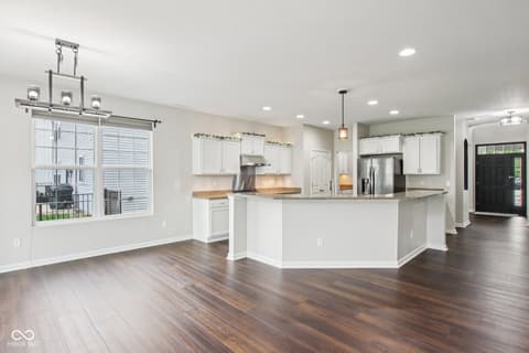 Step into this warm and inviting 4-bedroom, 2.5-bath home in the highly sought-after Avalon of Fishers, where comfort meets thoughtful design. From the moment you enter you'll notice the bright, welcoming feel carried throughout both levels-enhanced by an abundance of natural light. The open-concept kitchen is ideal for everyday living and entertaining, featuring granite countertops, a spacious center island, a butler's pantry, and upgraded cabinetry with pullout drawers. Thoughtful touches like under-cabinet and above-cabinet lighting, along with a newer Bosch dishwasher (2023), air fryer oven, and included refrigerator, make this space as functional as it is beautiful. Upstairs, enjoy a custom-designed primary walk-in closet and refreshed paint, while updated bathrooms feature modern faucets, mirrors. The half bath includes a new vanity for added charm. Throughout the home, updated lighting and new LVP flooring add a fresh, contemporary feel. Additional highlights include a 3-car tandem garage with a metal storage rack, a well-appointed laundry suite with new cabinetry, and tilt-in windows for easy cleaning. Major mechanicals are well maintained, with the HVAC replaced in 2022 and the water heater regularly serviced with new elements. Water softener is included. Step outside to a stamped concrete patio complete with a fire pit-perfect for relaxing or entertaining-surrounded by mature landscaping, a retaining wall, pristine lawn, and low-maintenance rubber mulch. Located just a short walk from top-rated schools, the community pool, and playground, this home offers an exceptional blend of convenience, comfort, and style. TV and mount can remain with the home.