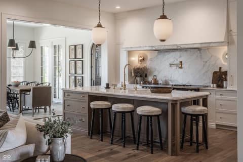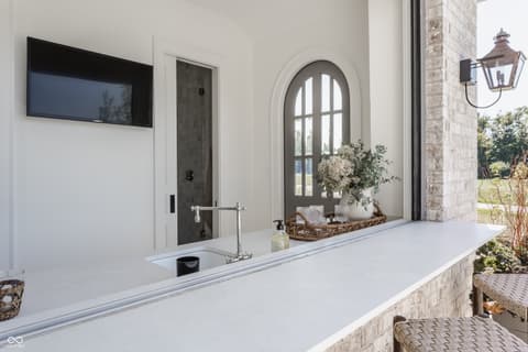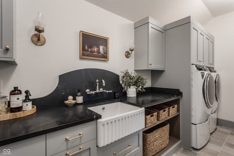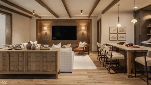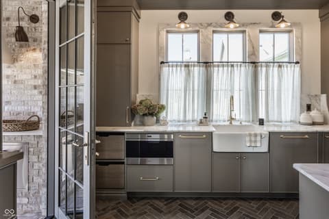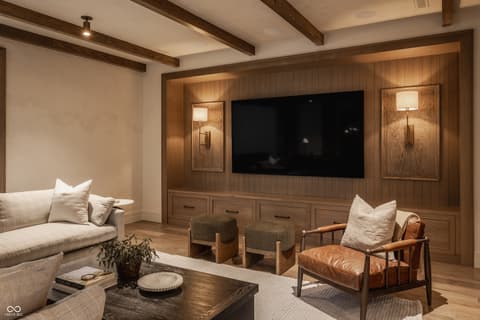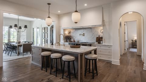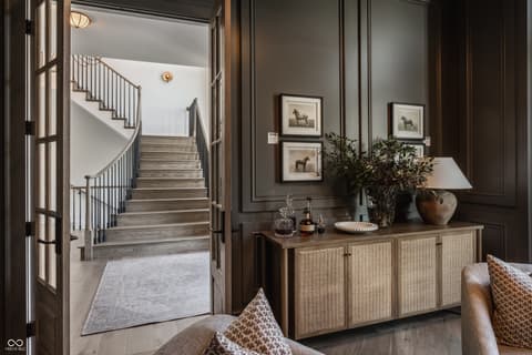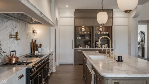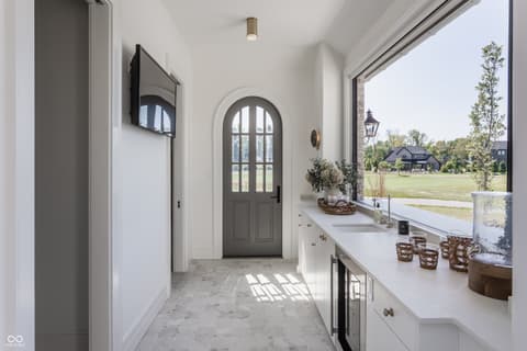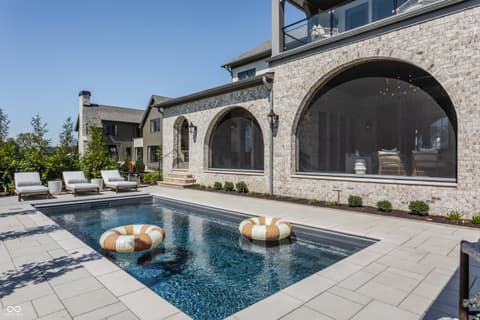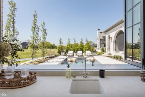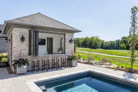 Boutique builder McKenzie Pierrot Homes has crafted an exceptional residence-winner of the People's Choice Award at the 2025 Home-A-Rama. Perfectly positioned along the 16th hole of the renowned Chatham Hills Golf Course designed by Pete Dye, this home blends timeless elegance with modern comfort. Every element was hand-selected by designer Jodi Pierrot to achieve a refined yet livable aesthetic. Thoughtful design defines each room, with finishes that create a cohesive and luxurious atmosphere: warm oak engineered hardwoods, custom arched wood doors, marble countertops, and a French La Cornue 65" range. Beauty meets practicality throughout, from the whole-home generator and custom storage built-ins to both main- and upper-level laundry rooms. The well-appointed mudroom includes a custom dog-wash station, home planning center, and water-bottle filling dispenser. Additional high-end features include globally sourced lighting, bespoke cabinetry, a full home automation system, and a dedicated golf simulator room. Inspired by classic English Tudor architecture and historic estates, the home is designed to endure with timeless appeal. The exterior harmonizes with the lush landscape of Chatham Hills, featuring lilacs, hydrangeas, boxwoods, hostas, and more. The expansive rear grounds offer an unparalleled outdoor living experience with a generous paver patio, outdoor kitchen, covered patio, reflection pool, and a beautifully equipped pool house complete with bar, bathroom, and additional laundry. A Premier Resident Golf Chatham Hills Membership and course-approved golf cart are included with the home-an extraordinary bonus that enhances an already remarkable offering. This property is the ultimate setting for luxurious outdoor living and unforgettable entertaining.