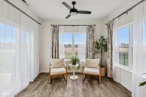 1469 Bigleaf DR in HAMILTON COUNTY, SHERIDAN, IN, USA, this single family residence, built in 2022, presents an attractive property in excellent condition, offering a thoughtfully designed living environment. The well designed open floor plan has 9' ceilings and a sunroom that adds so much natural light! Among the four bedrooms, the primary bedroom provides the added privacy and comfort of an ensuite bathroom. Both bathrooms have been tastefully updated and the primary bath has a double vanity, a walk in shower and garden tub! You will love the privacy of a homesite that does not back up to another house! A patio extends the living space outdoors, perfect for enjoying the rural area surroundings. This home has been impeccably maintained and that shows at every detail. A really nice family neighborhood with playground and water views!