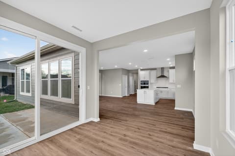 Step into the thoughtfully designed Prosperity floor plan at Kimblewick by Del Webb, where style meets functionality. The heart of the home is the gourmet kitchen, boasting 42" Landen white cabinets, Carrara Morro quartz countertops, a tile backsplash, and built-in gas stainless steel appliances. Perfectly positioned, the kitchen flows seamlessly into the gathering room, dining cafe area, and the inviting sunroom, which opens onto a patio-ideal for entertaining or relaxing. A flex room with doors provides versatile space for an office, hobby room, or quiet retreat. The owner's suite is a true haven, featuring an en-suite bath with quartz countertops and a walk-in shower, complete with luxurious tile finishes. Guests will appreciate the privacy of the second bedroom. Luxury vinyl plank flooring spans the home, combining durability with timeless beauty. The extended garage offers ample storage, perfect for stowing seasonal items or creating a workshop space. The HOA includes full cable and high-speed internet in the monthly dues, offering exceptional value and added convenience for residents in this community. The 13,000 sq. ft. clubhouse serves as the community's social and recreational hub, featuring both indoor and outdoor pools, patio lounge areas, and a range of fitness options including a state-of-the-art gym, tennis and pickleball courts, and a golf simulator. Outdoor enthusiasts will appreciate the trails, parks, and activity spaces that promote community connection and exploration. Conveniently located south of 151st Street, Kimblewick offers luxury living, nature's tranquility, and easy access to the neighborhood's amenities. Photos of similar model.