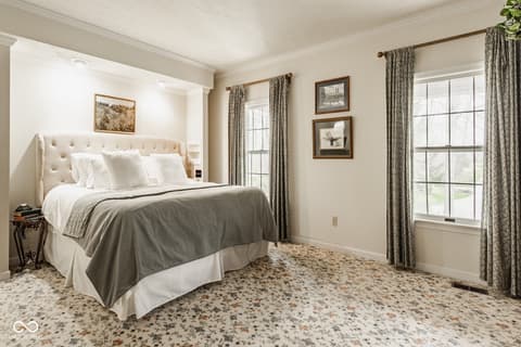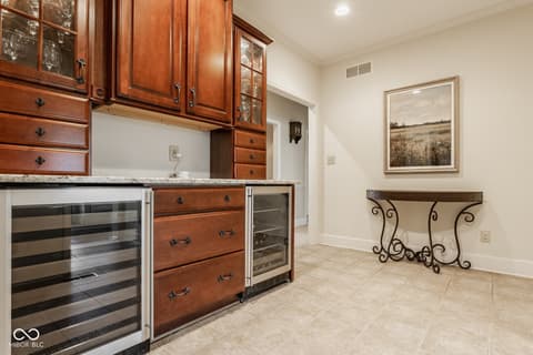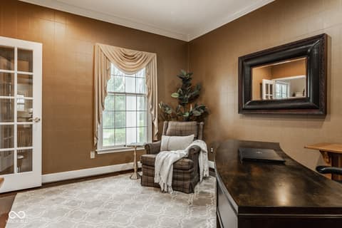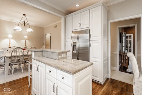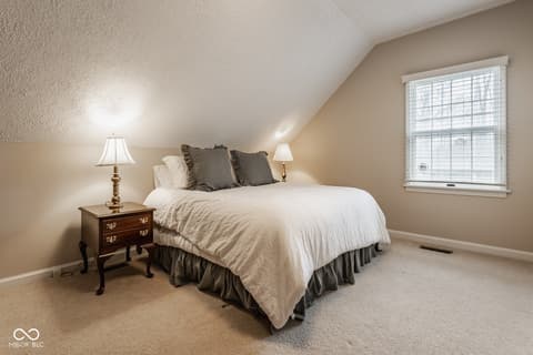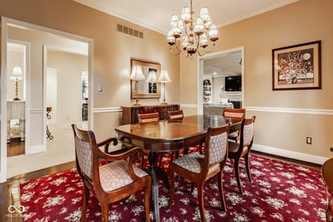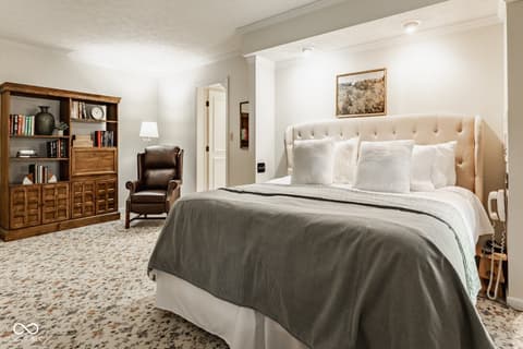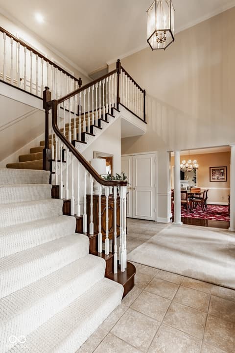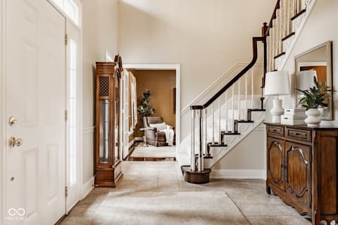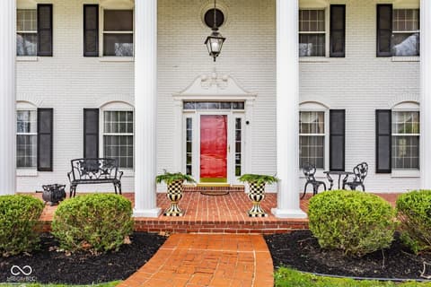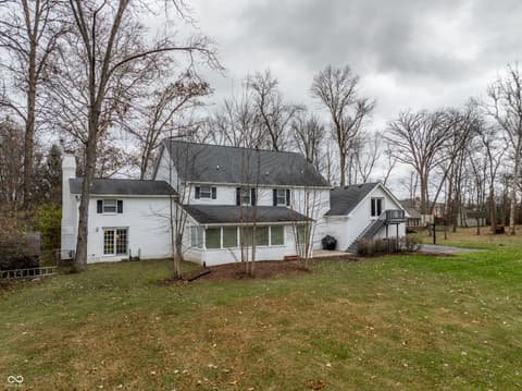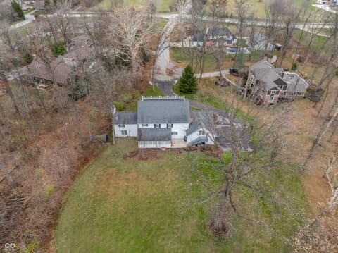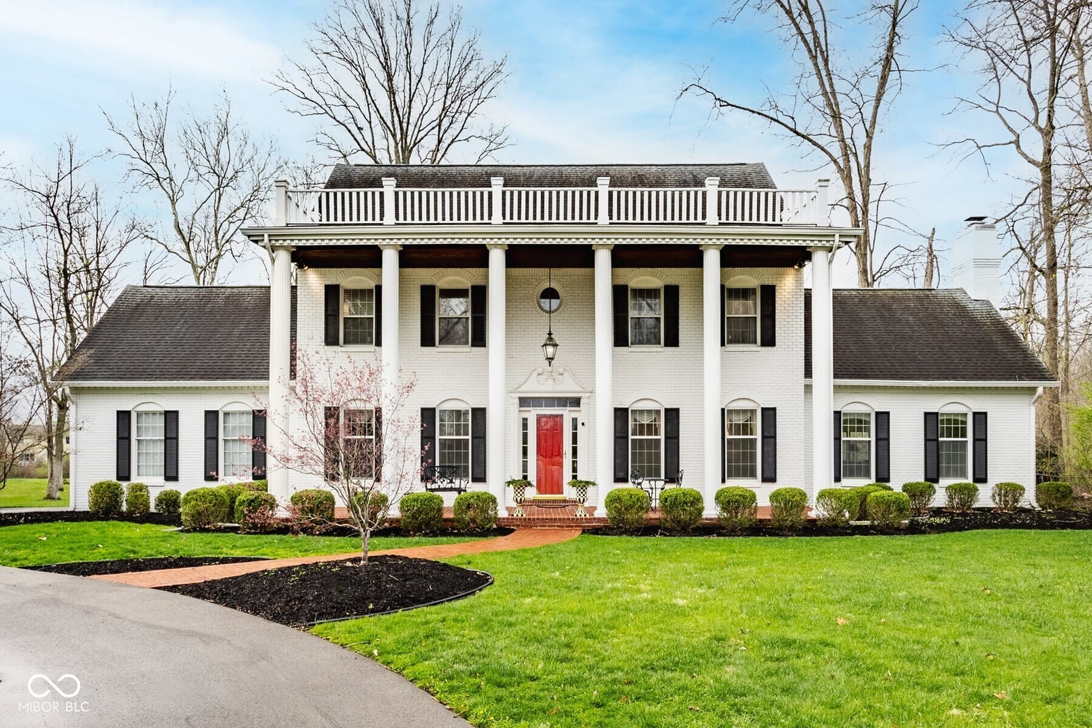An iconic all-brick American Classic, this stately Colonial estate is thoughtfully set on approximately 3.4 acres in a desirable Westfield estate setting bordering Carmel. Beautifully traditional in its construction, the home is tucked at the end of a cul-de-sac with direct Monon Trail access and no HOA. Grand in scale yet warmly livable, the home has been cared for by the original owners with exceptional attention. Its timeless architecture, traditional craftsmanship, and enduring materials offer a compelling opportunity for thoughtful modernization, allowing the next owner to tailor the home while preserving its classic character. A gracious foyer with a sweeping staircase and traditional millwork sets the tone, leading to generously proportioned living and entertaining spaces. A private main-level office offers a quiet, dedicated work-from-home space, while the kitchen features a center island and opens to a breakfast room and adjoining sunroom, creating a natural flow for everyday living. A refined entertaining wing includes a family room with fireplace, bar, wine storage, beverage refrigeration, and a butler's pantry ideal for both intimate and large gatherings. All bedrooms are located on the upper level, including a spacious primary suite with sitting area, walk-in closet, and generous bath, along with two additional en suite bedrooms and a large, versatile bonus room. The finished basement provides additional living space and abundant storage. Exceptionally cared for and beautifully livable as it stands, the home also presents a rare blend of privacy, character, and long-term possibility.