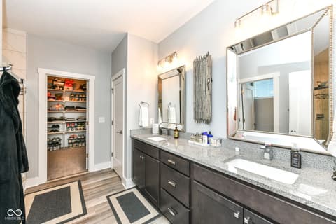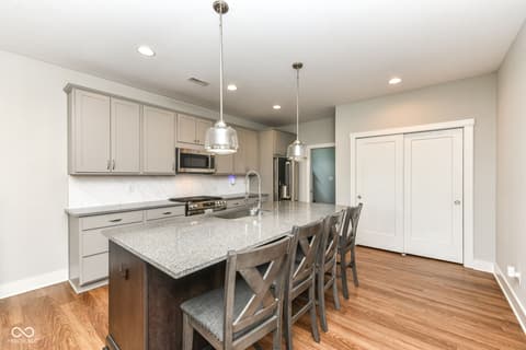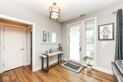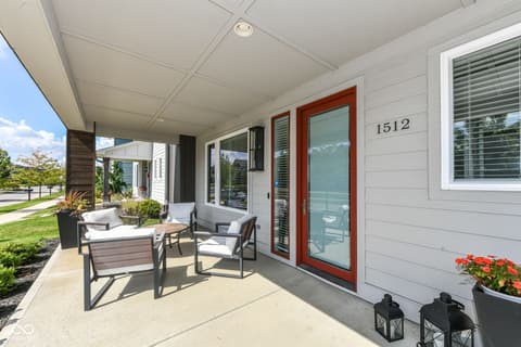 Welcome to Sunrise on the Monon, built by Old Town Design Group! This home features a contemporary design offering 3 beds, 2.5 baths, and primary ensuite on the main level! Oversized windows throughout offer an abundance of natural light. LVP flooring, gas fireplace, stainless appliances including Cafe refrigerator with built in Keurig, gas range and dishwasher replaced in 2025. Aristokraft soft close cabinetry, granite countertops in kitchen | bathrooms, and a large island! Other features include built-in surround sound, irrigation and security systems, Tesla wall mount charger in the garage, and high efficiency HVAC. Primary bedroom offers dual vanities, a large walk-in closet with built-in shelving, and a ceramic tiled shower. Open floorplan and large covered porch are great for entertaining! Exterior stain and paint in 2025. This community is located on the Monon Trail; just minutes from Midtown Carmel, Fashion Mall, and interstate access. Truly a prime location and move-in ready!