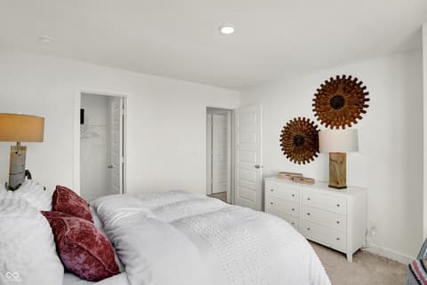 The Townhomes Collection features new townhome designs coming soon to the Abbott Commons master-planned community in Fishers, IN. Homeowners will enjoy a wide array of future amenities, including a swimming pool with a convenient pool house, a playground, and winding trails. Situated in the top-rated Hamilton Southeastern School Corporation, the area offers a family-friendly atmosphere with diverse attractions. Residents can attend year-round concerts and seasonal festivities at the Nickel Plate District Amphitheater. For outdoor enthusiasts, Geist Waterfront Park offers a beach, pirate-themed playground, picnic areas and a watercraft launch. This two-story townhome-style condo makes smart use of the available space. The open living area is on the first floor and includes a kitchen, family room and dining area with a covered patio attached. Upstairs are three bedrooms, including the owner's suite, as well as a versatile loft and laundry room. *Photos/Tour of model may show features not selected in home.
